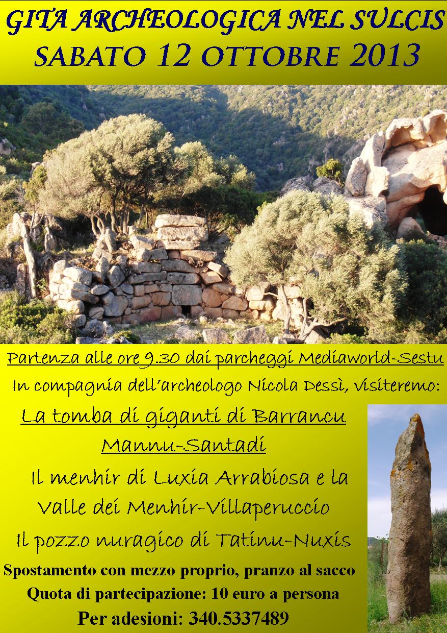 GITA ARCHEOLOGICA NEL SULCIS – SABATO 12 OTTOBRE 2013ARCHAELOGICAL TOUR IN SULCIS – SATURDAY OCTOBER 12