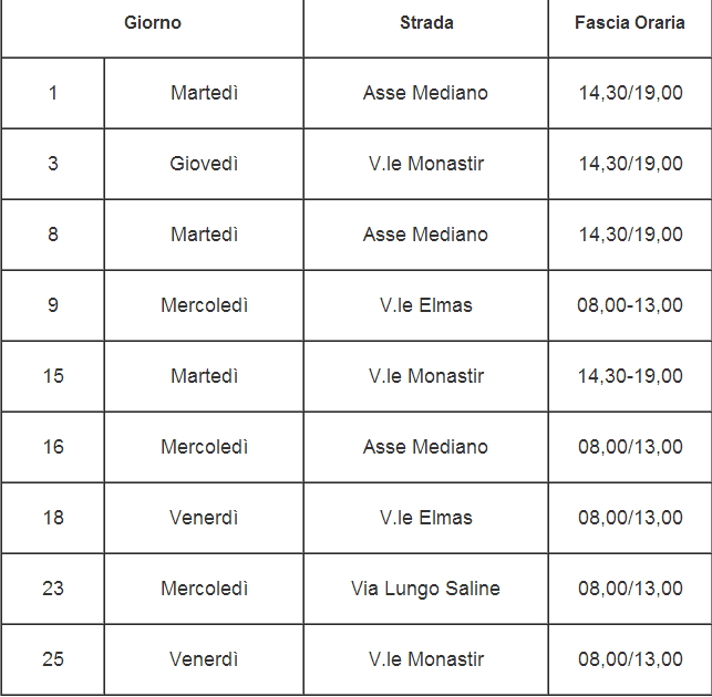 The Body Municipal Police of Cagliari has announced the timetable showing the days and places where speed cameras will be in operation for the month of July.