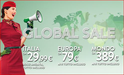 GLOBAL SALE ALITALIA: ITALIA DA 29,99 €, EUROPA DA 79 €, MONDO DA 389 €