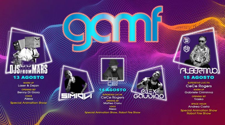 Il GAMF è diventato con gli anni un festival dell’arte in tutti i sensi, capace di offrire agli spettatori un grande show unisce musica ed effetti speciali con vocalist e performer, animazioni acrobatiche, effetti speciali e scenografie mozzafiato. Il tutto grazie anche al palco super hi-tech, con una sofisticata e avanzatissima tecnologia laser inonderà l’intero paese di sorprendenti olografie. Insomma, per capirci, questa manifestazione è ciò che più avvicina la Sardegna a Ibiza.