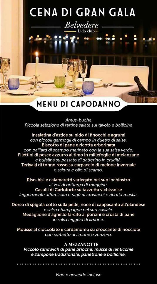 GRAN CAPODANNO 2017 AL BELVEDERE LIDO CLUB – CAGLIARI – SABATO 31 DICEMBRE 2016 Reviewed by admin on . Amiche e amici quest 'anno abbiamo pensato in grande .. Per l'ultima notte dell' anno abbiamo scelto non una location qualsiasi , ma il club d'eccezione , sopra Amiche e amici quest 'anno abbiamo pensato in grande .. Per l'ultima notte dell' anno abbiamo scelto non una location qualsiasi , ma il club d'eccezione , sopra Rating: 0