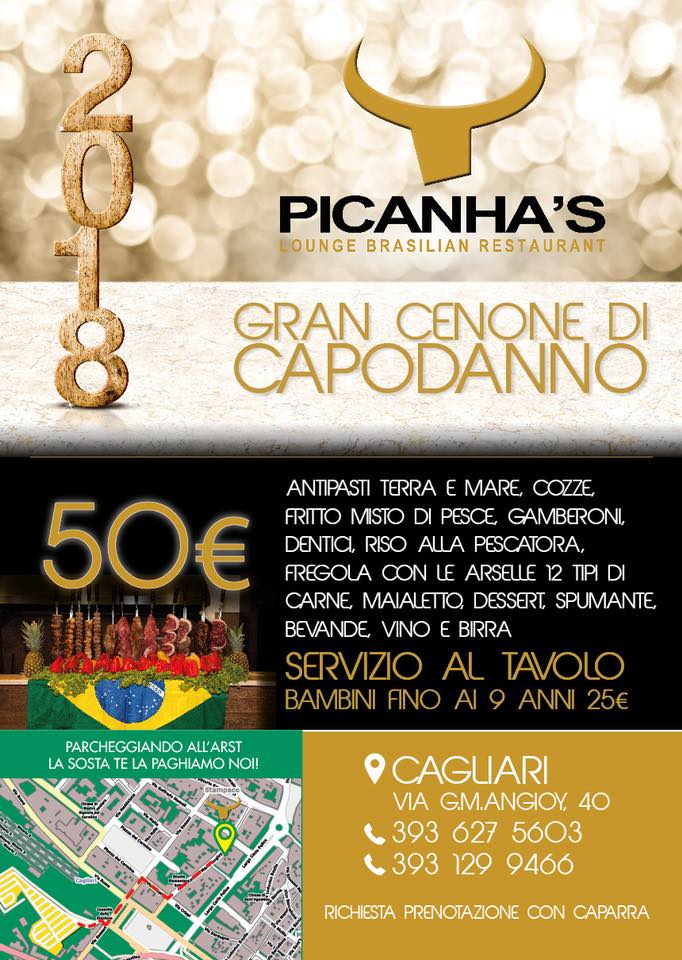 GRAN CENONE DI CAPODANNO 2018 AL PICANHA - CAGLIARI - DOMENICA 31 DICEMBRE 2017 COSTO 50 €GRAN CENONE DI CAPODANNO 2018 AL PICANHA - CAGLIARI - DOMENICA 31 DICEMBRE 2017 COSTO 50 €