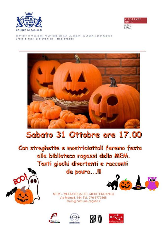 L’Amministrazione Comunale di Cagliari, in collaborazione con il raggruppamento temporaneo di imprese che gestisce i servizi dell’Archivio Storico e del Sistema Bibliotecario comunale (La Memoria Storica soc. coop., Agorà Sardegna, Società Cooperativa Culture, Karalimedia coop. a.r.l.) vi invitano a festeggiare con noi un magnifico e zuccoso Halloween!