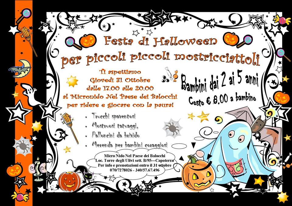 Appuntamento per i bambini alla Festa di Halloween presso il Micro Nido de “Nel Paese dei balocchi” a Capoterra, giovedi 31 ottobre dalle ore 17 alle 20 per ridere e giocare con la paura…