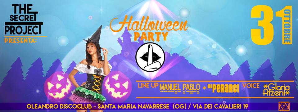 HALLOWEEN PARTY – THE SECRET PROJECT – OLEANDRO DISCOCLUB -S.MARIA NAVARRESE- LUNEDI 31 OTTOBRE 2016