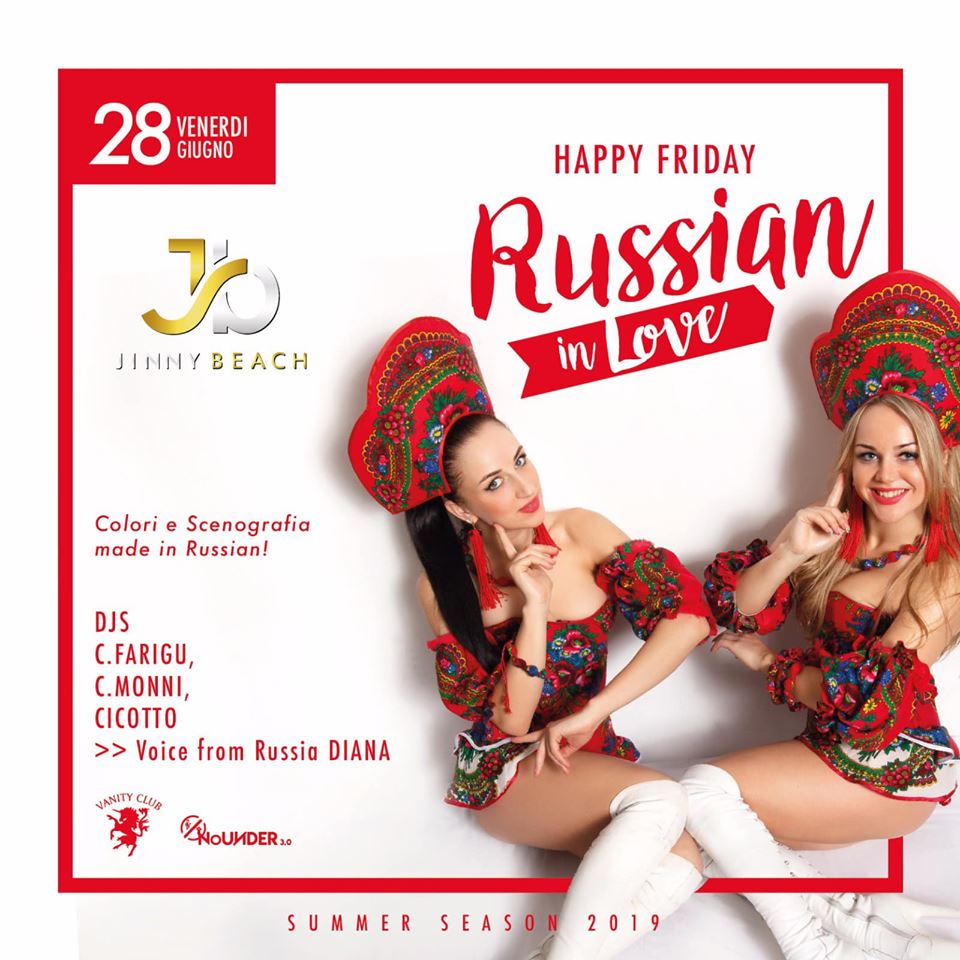 HAPPY FRIDAY – RUSSIAN IN LOVE- JINNY BEACH – QUARTU SANT’ELENA- VENERDI 28 GIUGNO 2019