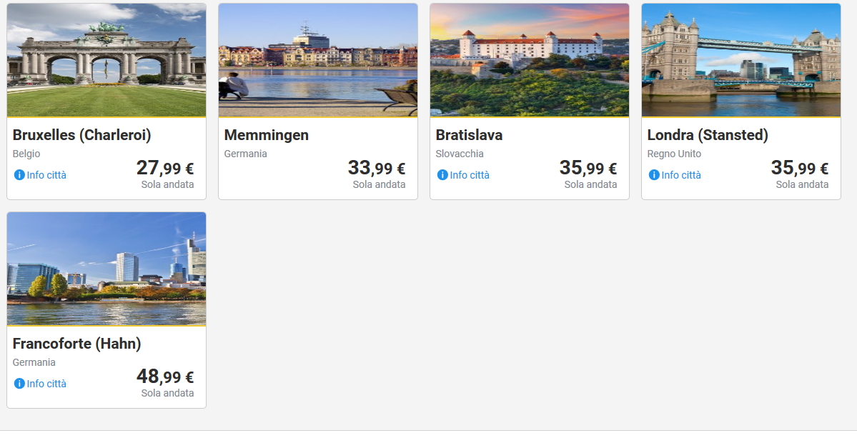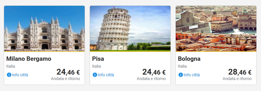 QUESTE INVECE LE OFFERTE PER VOLI ANDATA E RITORNO PER VIAGGI DI 1-3 GIORNI