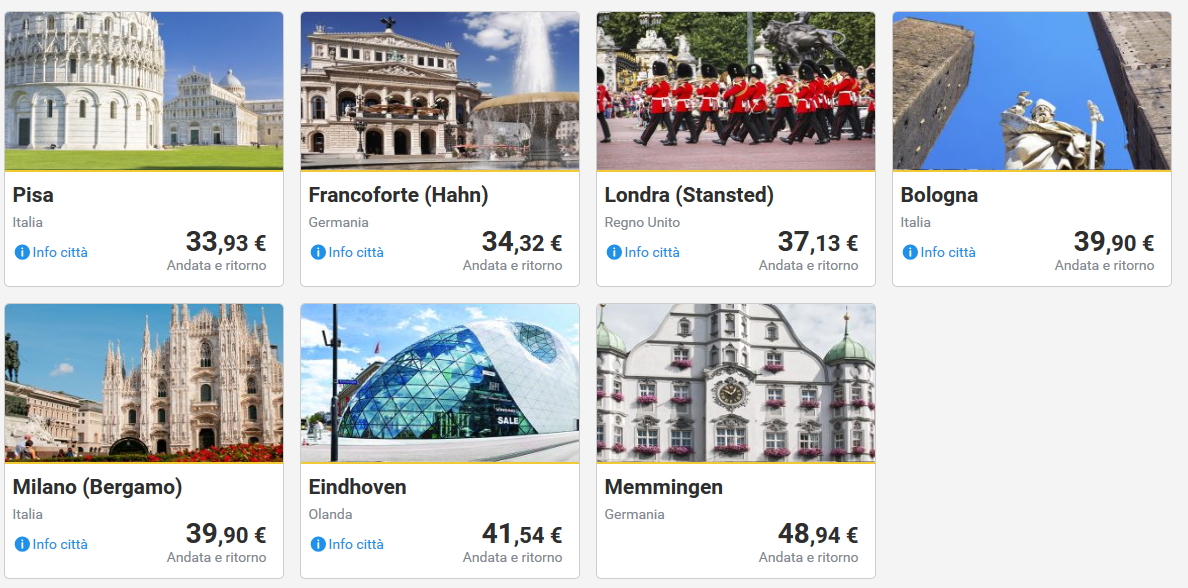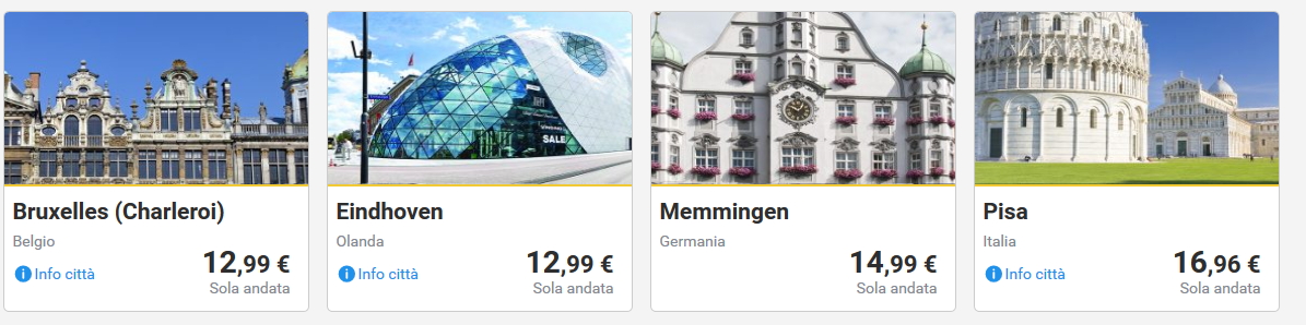 QUESTE INVECE LE OFFERTE PER VOLI ANDATA E RITORNO PER VIAGGI DI 1-3 GIORNI