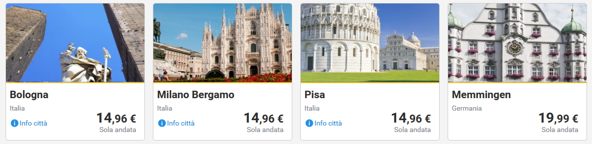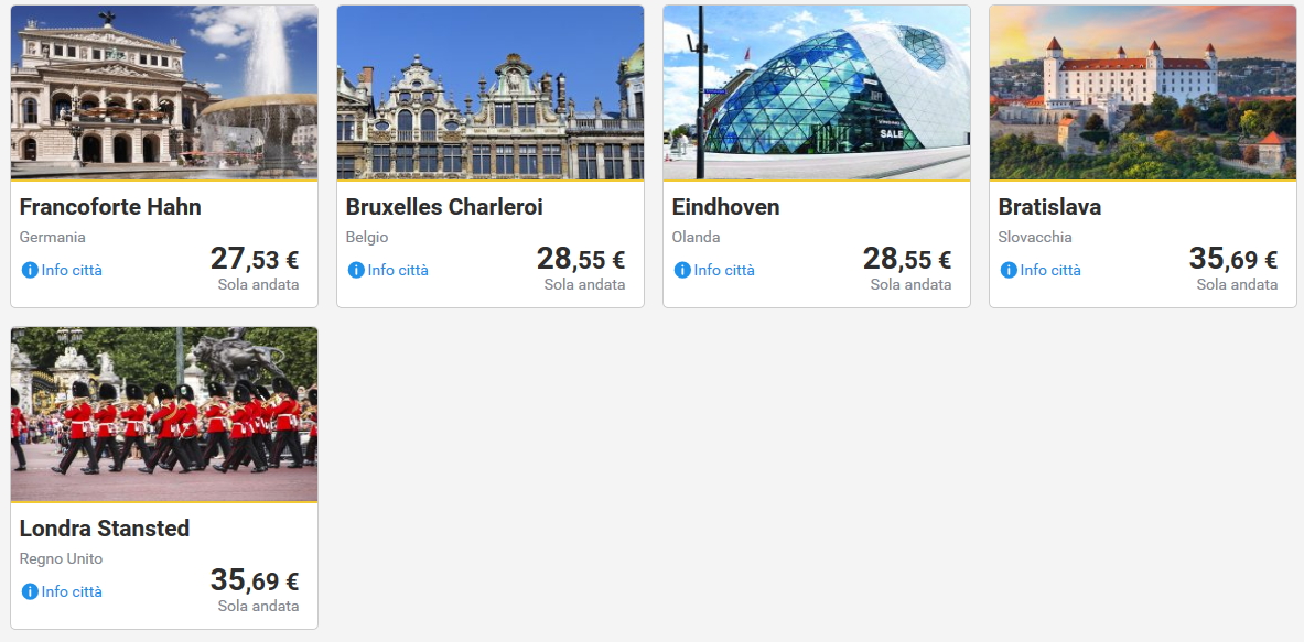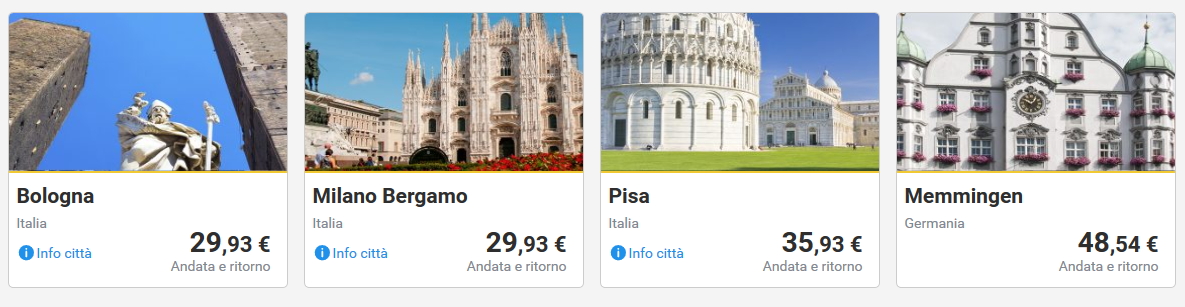 QUESTE INVECE LE OFFERTE PER VOLI ANDATA E RITORNO PER VIAGGI DI 1-3 GIORNI