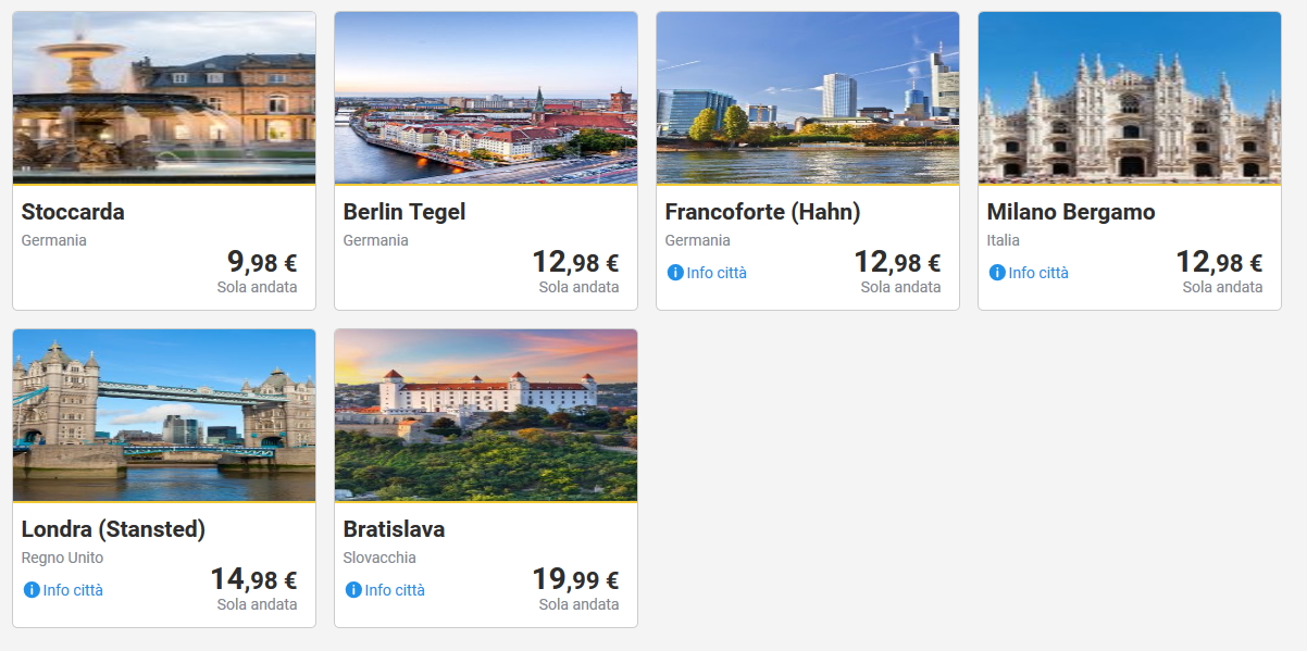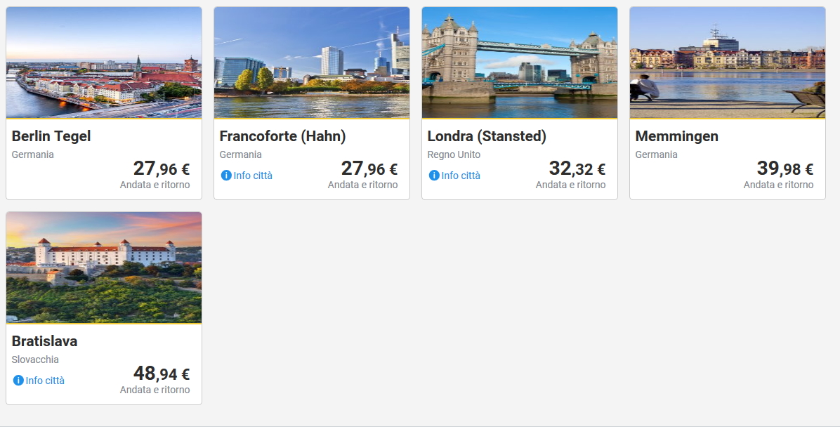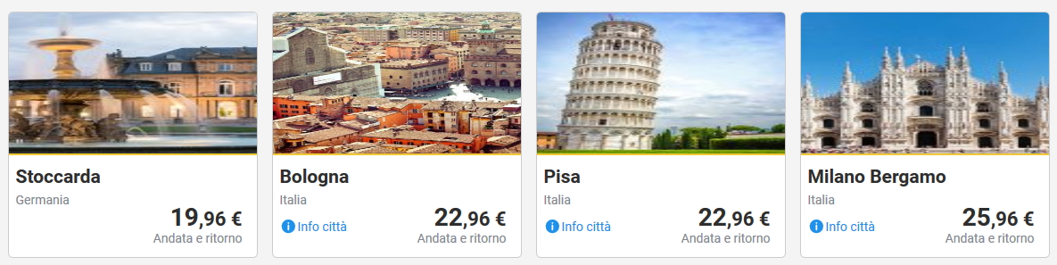 QUESTE INVECE LE OFFERTE PER VOLI ANDATA E RITORNO PER VIAGGI DI 1-3 GIORNI