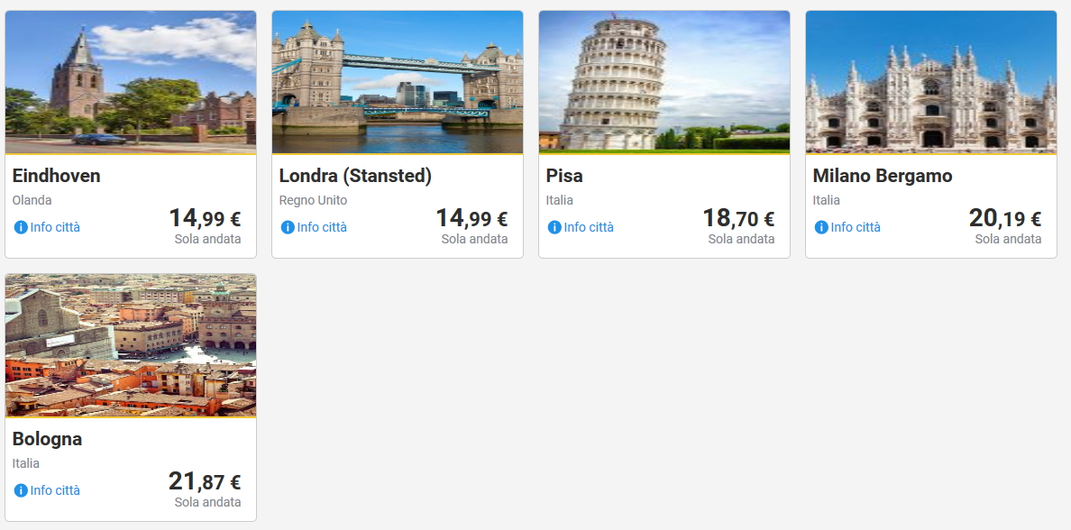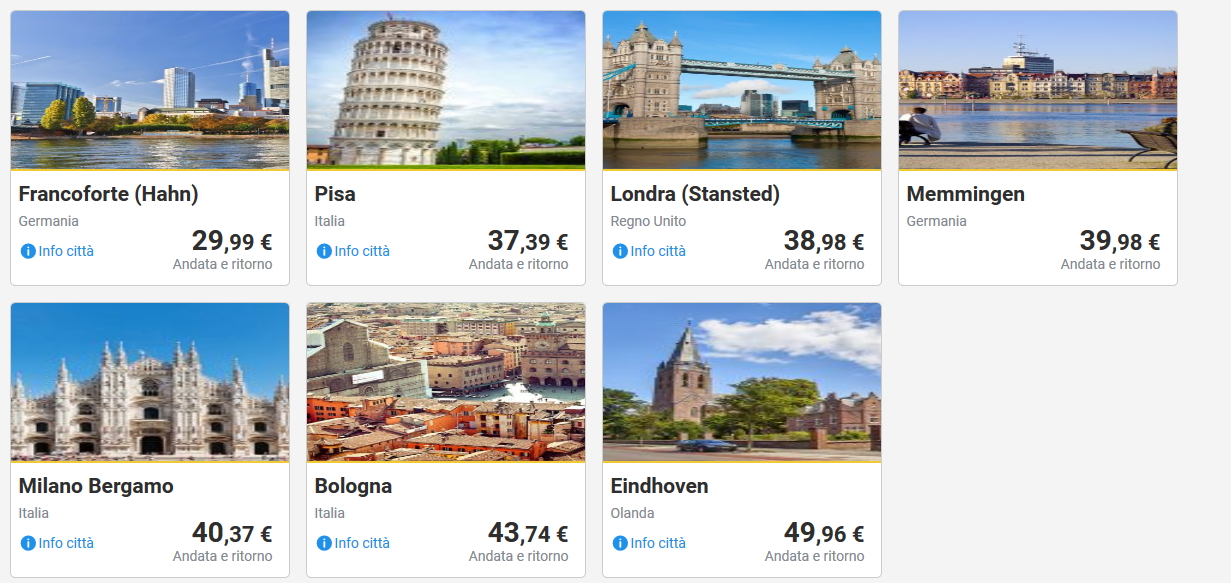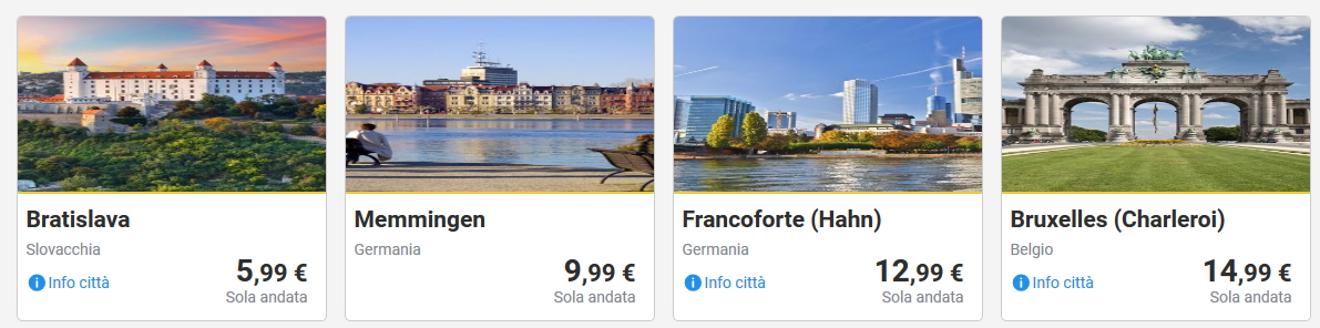QUESTE INVECE LE OFFERTE PER VOLI ANDATA E RITORNO PER VIAGGI DI 1-3 GIORNI
