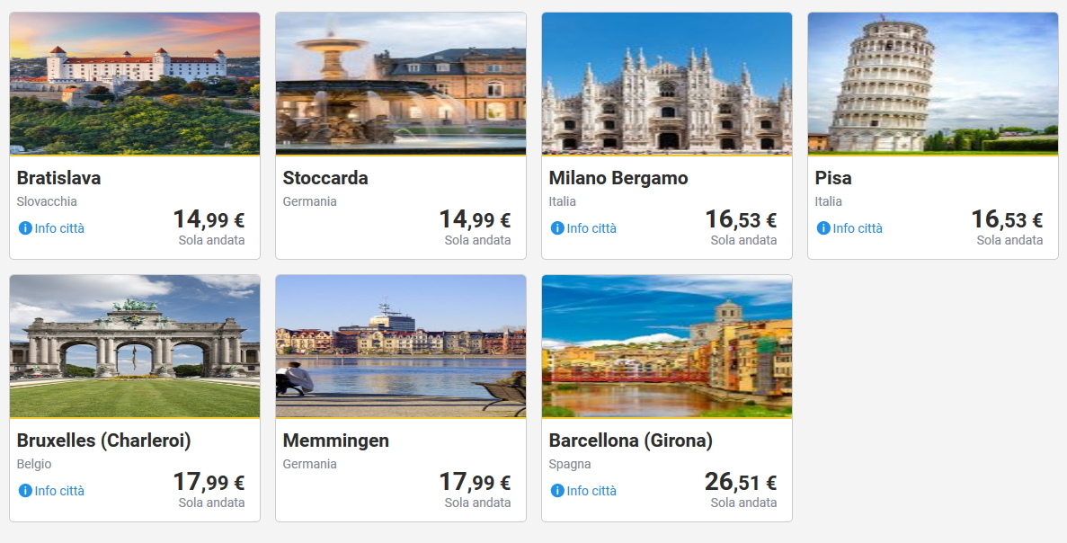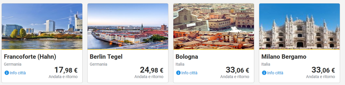 QUESTE INVECE LE OFFERTE PER VOLI ANDATA E RITORNO PER VIAGGI DI 1-3 GIORNI