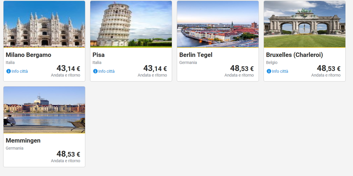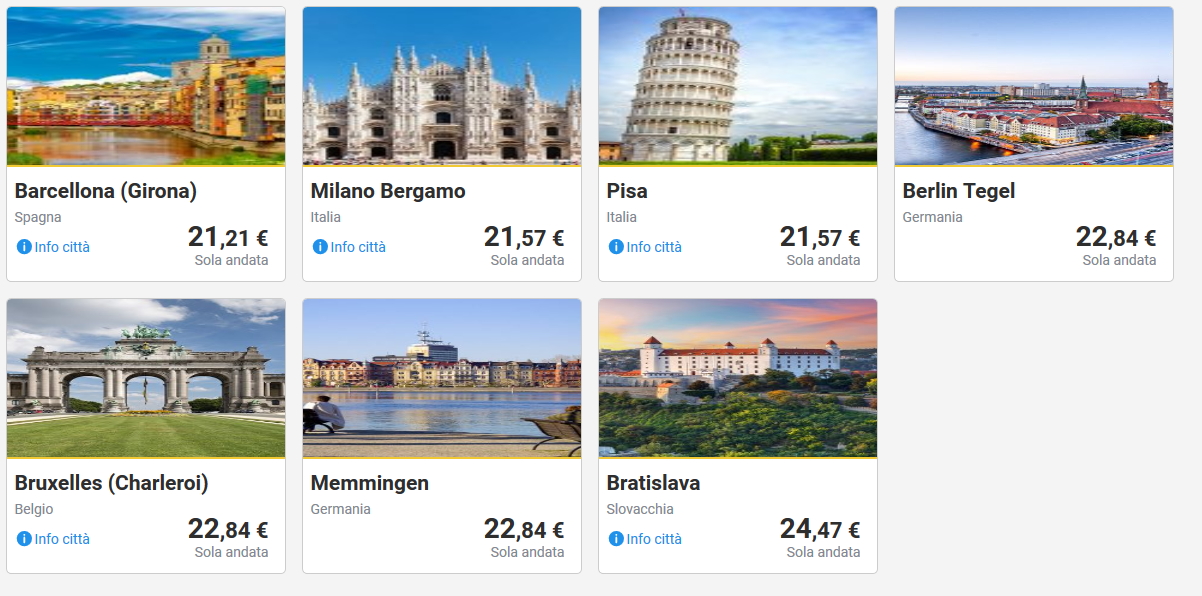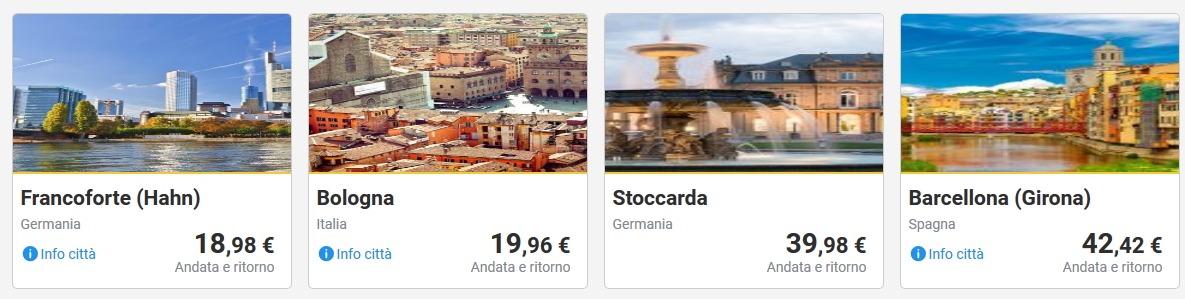 QUESTE INVECE LE OFFERTE PER VOLI ANDATA E RITORNO PER VIAGGI DI 1-3 GIORNI