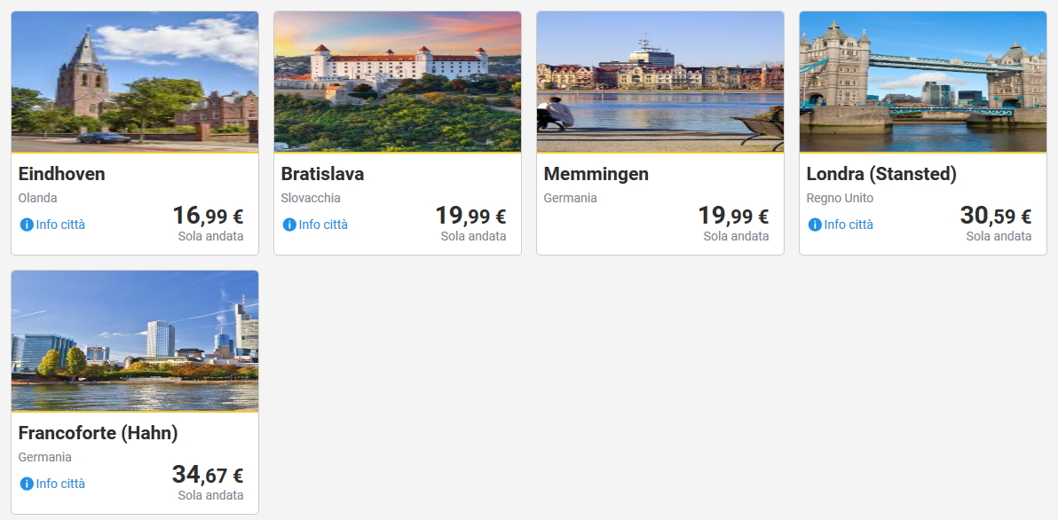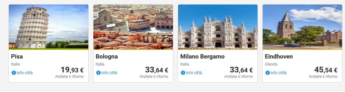 QUESTE INVECE LE OFFERTE PER VOLI ANDATA E RITORNO PER VIAGGI DI 1-3 GIORNI