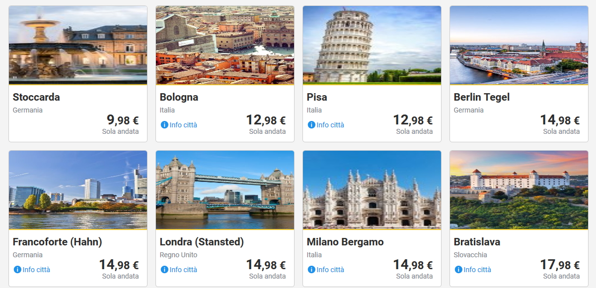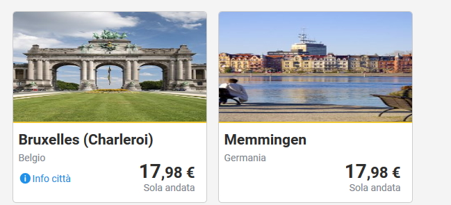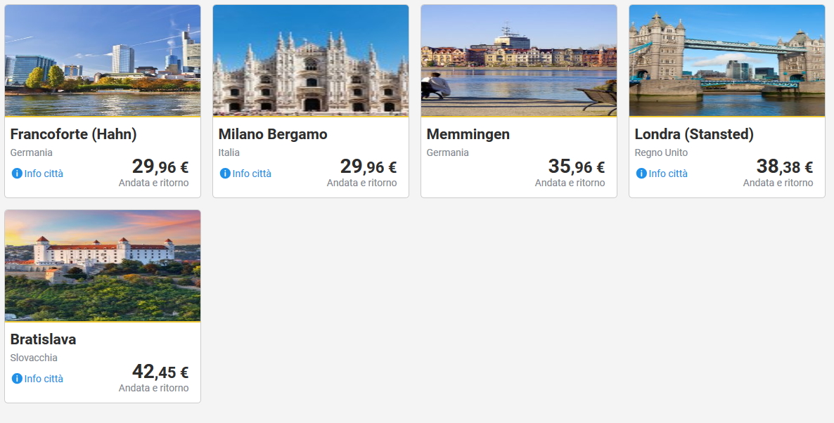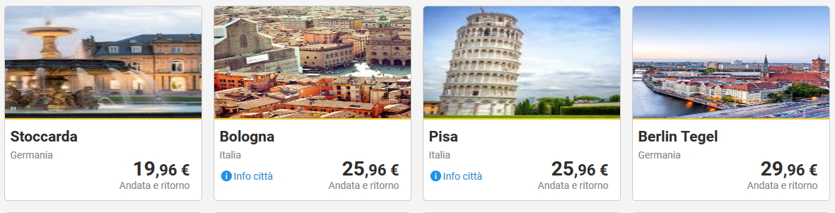 QUESTE INVECE LE OFFERTE PER VOLI ANDATA E RITORNO PER VIAGGI DI 1-3 GIORNI