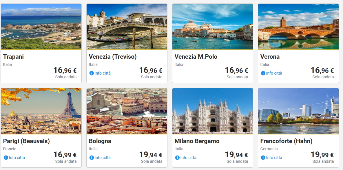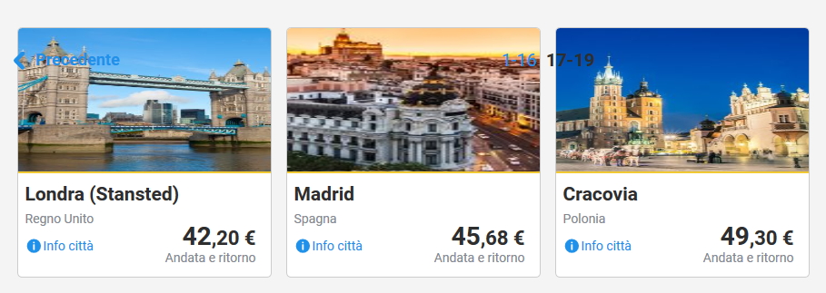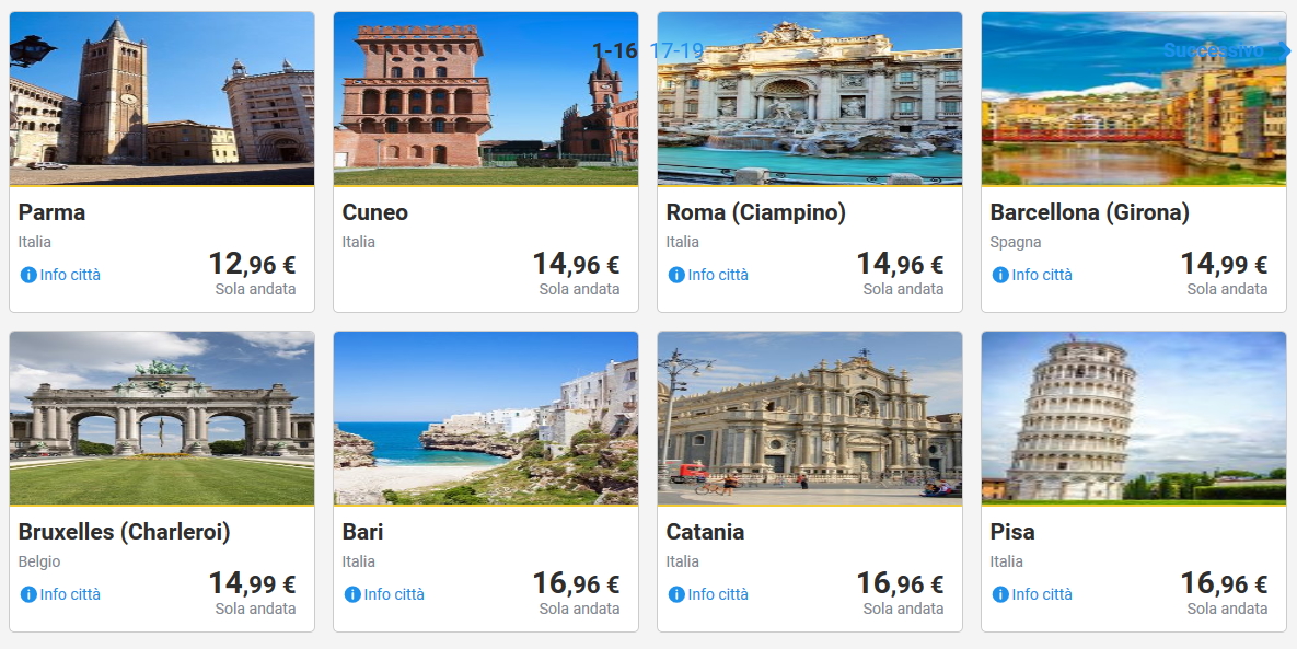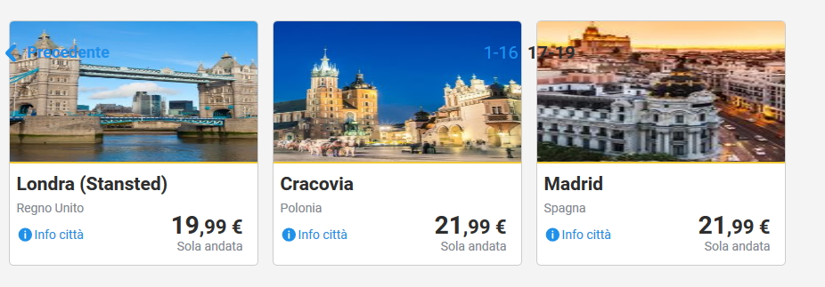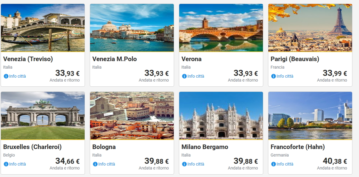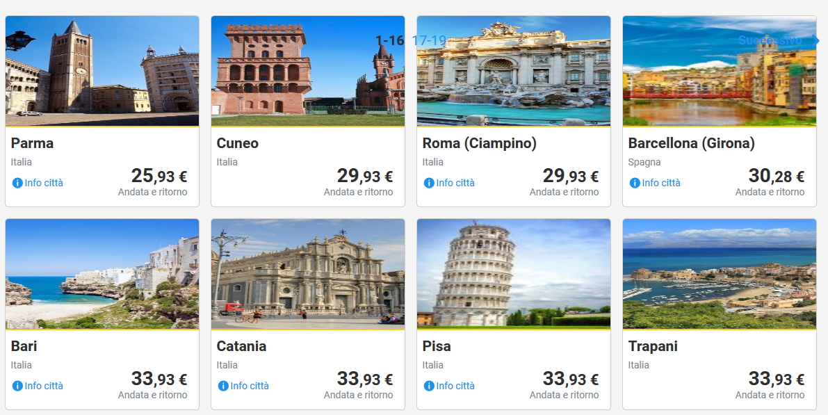 Qui sotto invece trovate combinazioni di volo andata e ritorno per viaggi di 1-3 giorni