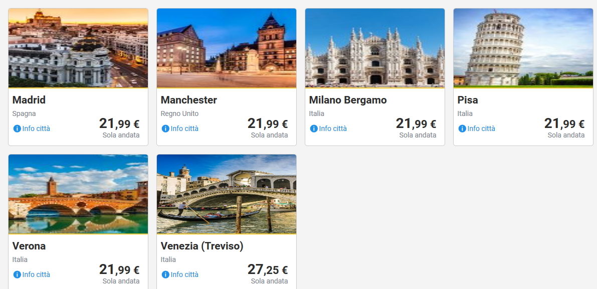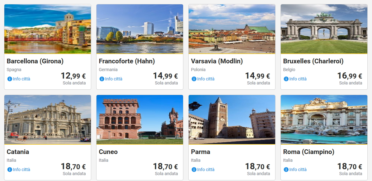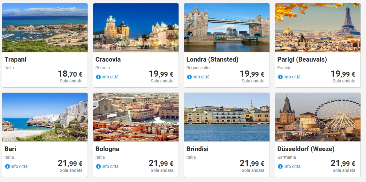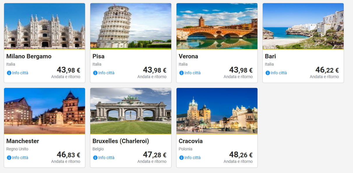 Qui sotto invece trovate combinazioni di volo andata e ritorno per viaggi di 1-3 giorni