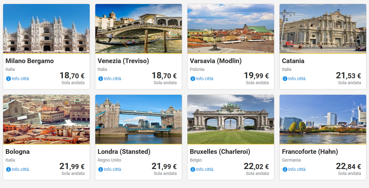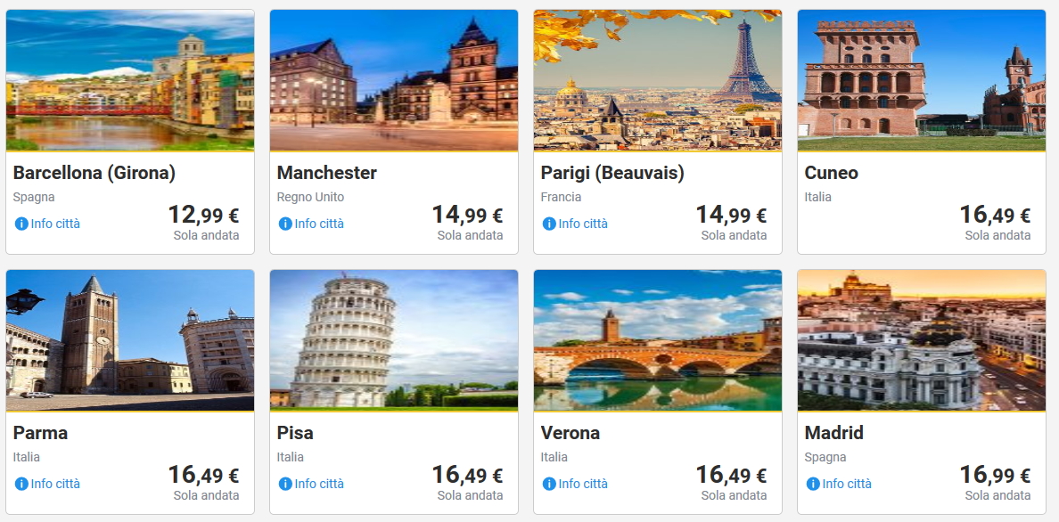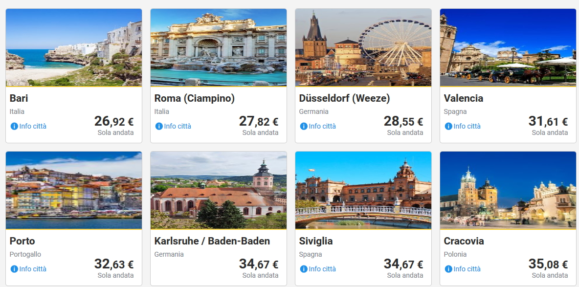 Qui sotto invece trovate combinazioni di volo andata e ritorno per viaggi di 1-3 giorni