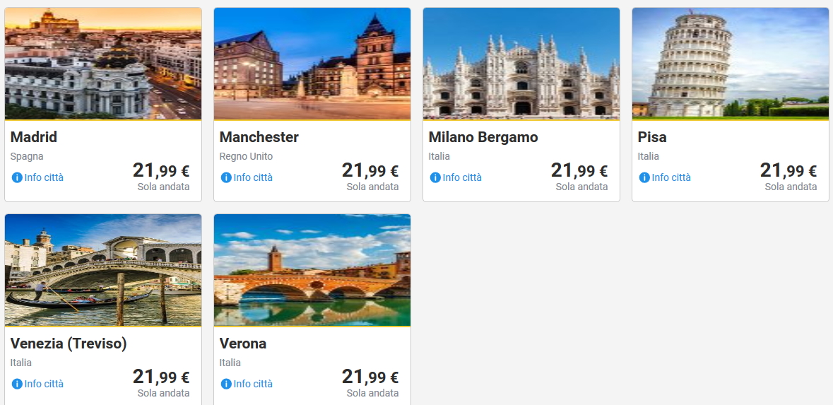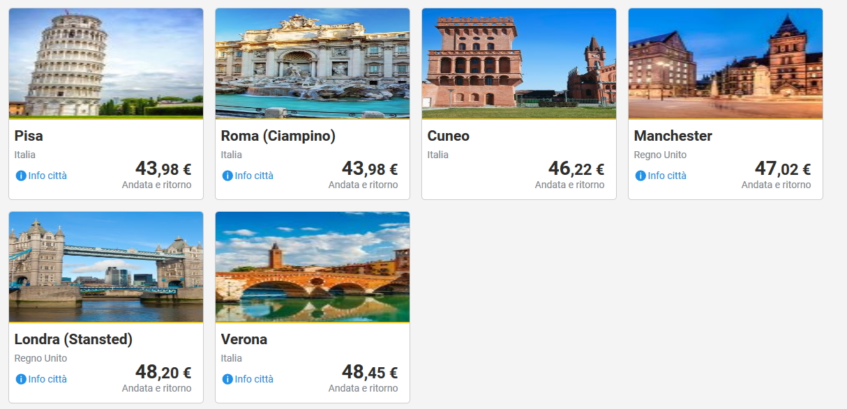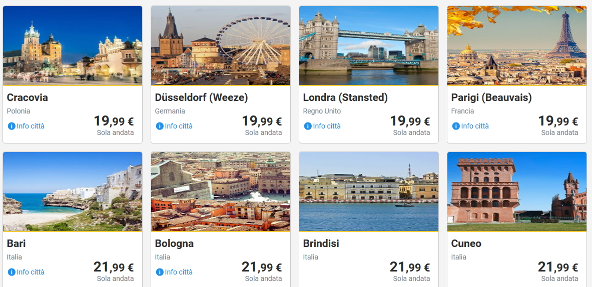 Qui sotto invece trovate combinazioni di volo andata e ritorno per viaggi di 1-3 giorni