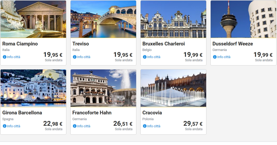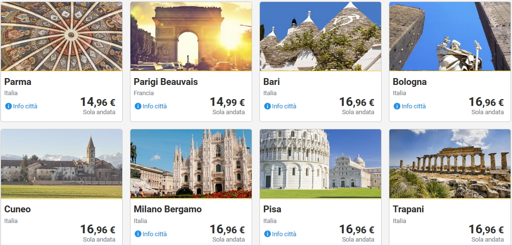 Dando un’occhiata alle offerte da Cagliari, si possono trovare voli per Milano, Pisa, Parma, Roma, Dusseldorf, Francoforte, Parigi, Bruxelles, Cracovia e altre destinazioni a pochi euro.