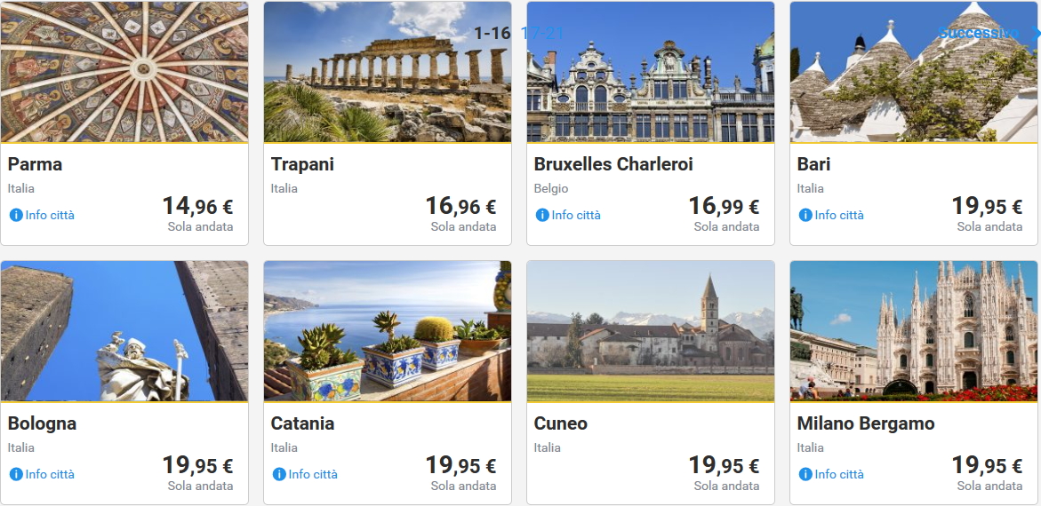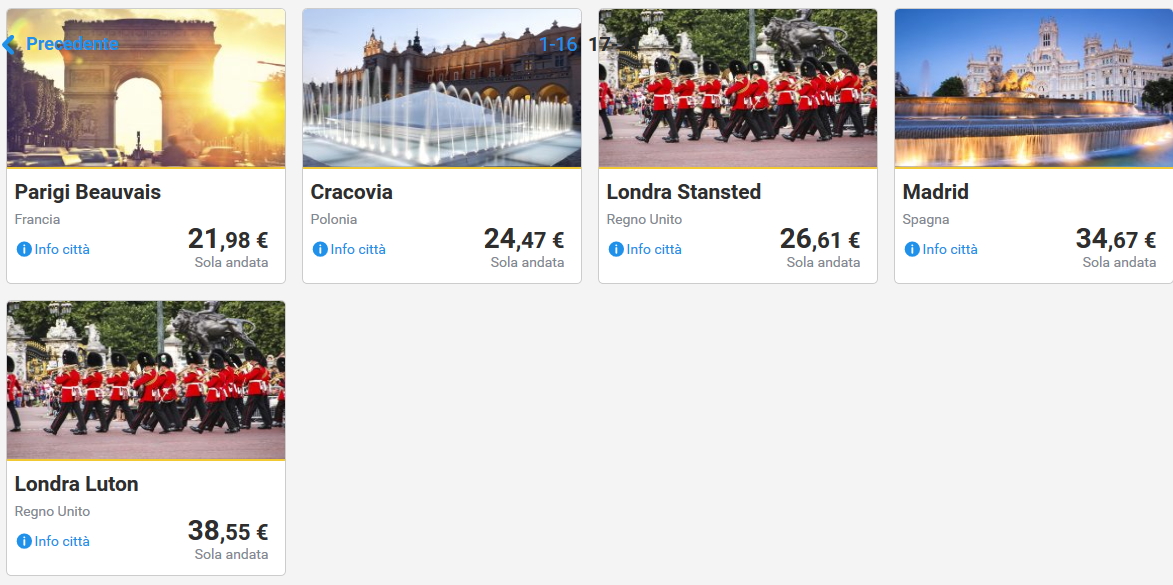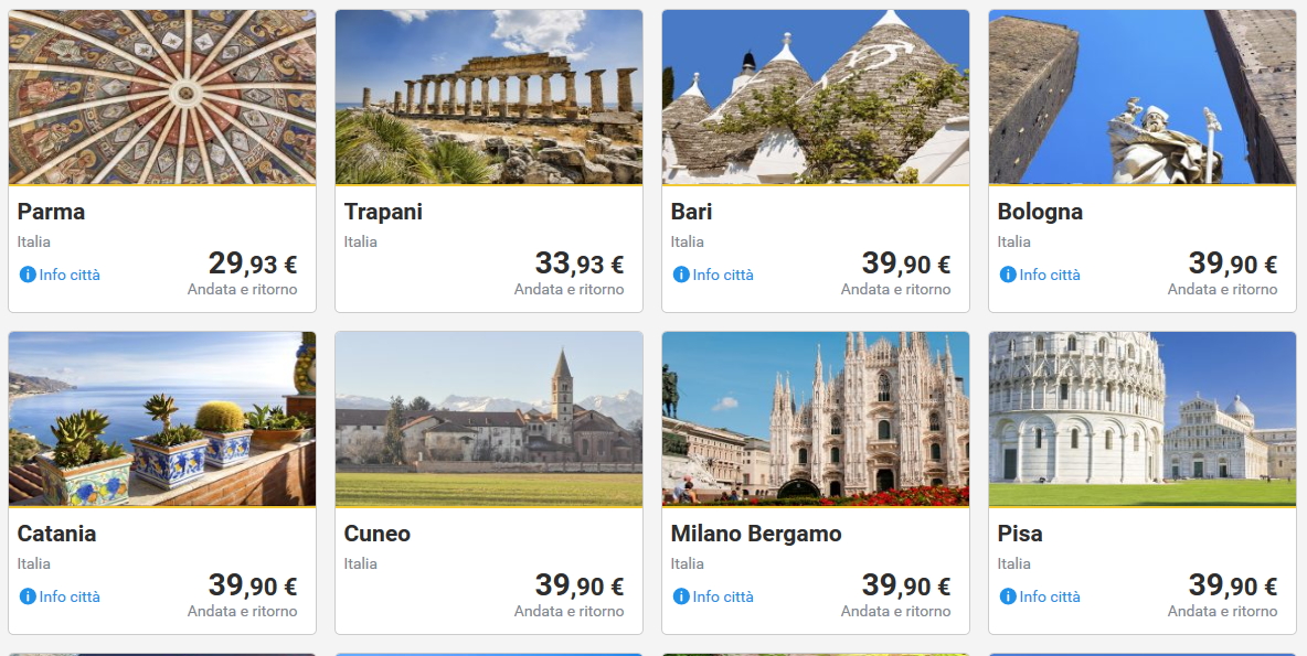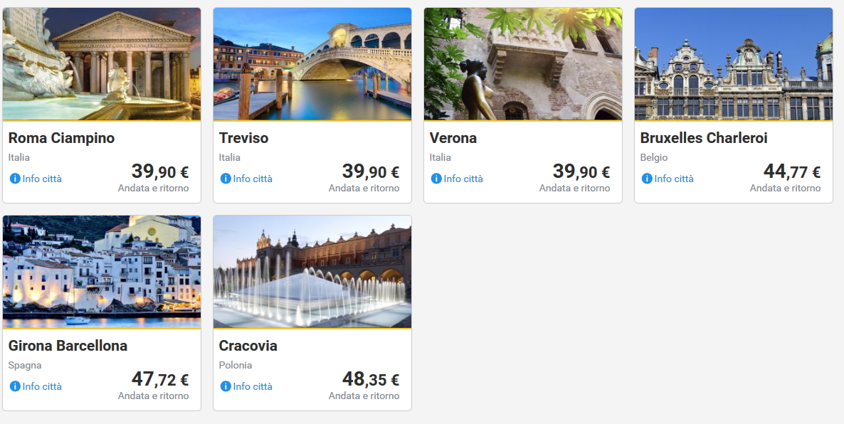 Qui sotto invece trovate combinazioni di volo andata e ritorno per viaggi di 1-3 giorni