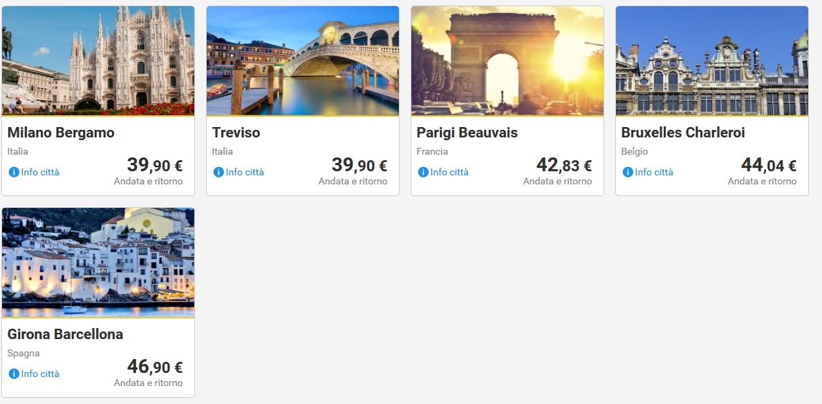 Qui sotto invece trovate combinazioni di volo andata e ritorno per viaggi di 1-3 giorni