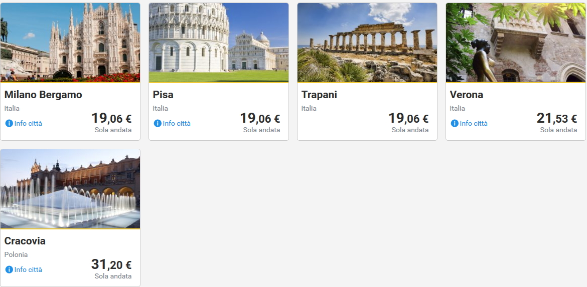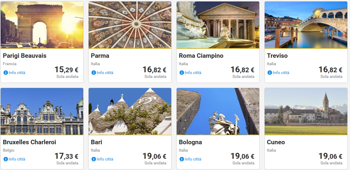 Dando un’occhiata alle offerte da Cagliari, si possono trovare voli per Milano, Bari,Pisa, Parma, Roma, Dusseldorf, Francoforte, Parigi, Bruxelles, Cracovia e altre destinazioni a pochi euro.