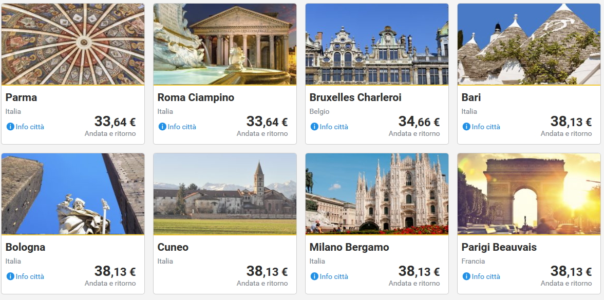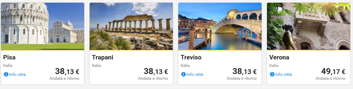 Qui sotto invece trovate combinazioni di volo andata e ritorno per viaggi di 1-3 giorni