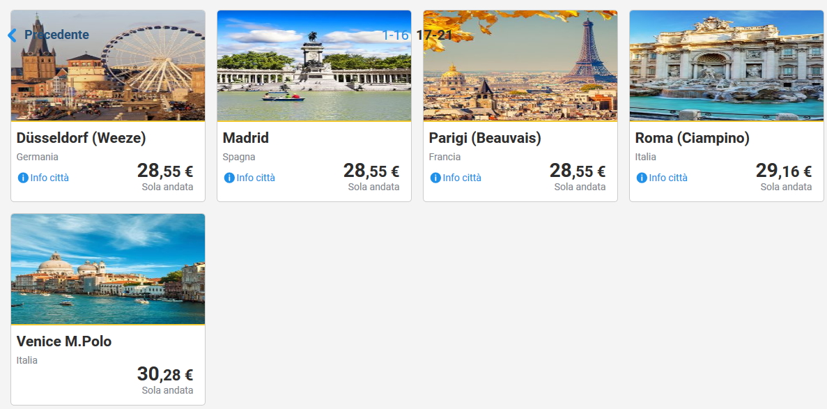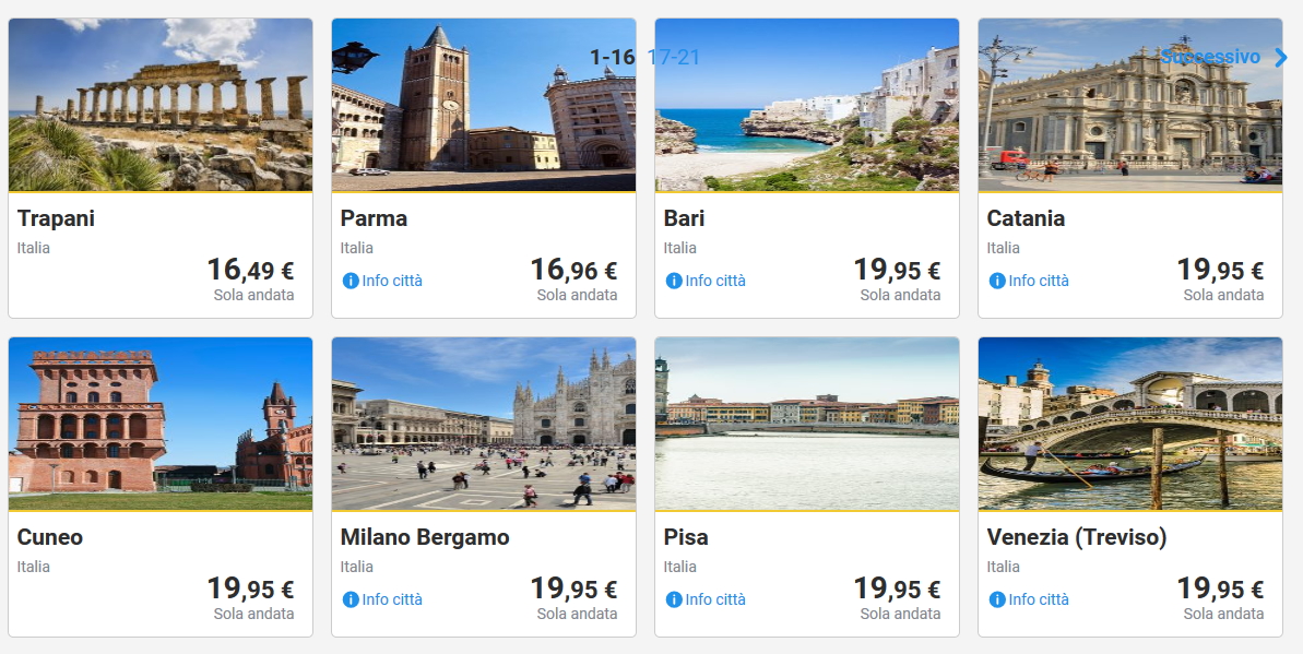 Qui sotto invece trovate combinazioni di volo andata e ritorno per viaggi di 1-3 giorni