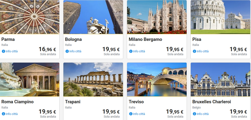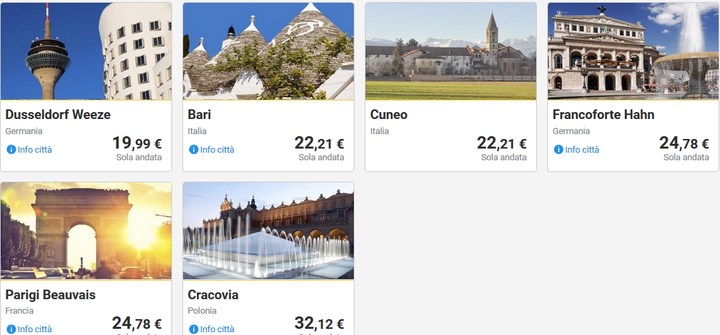 Dando un’occhiata alle offerte da Cagliari, si possono trovare voli per Milano, Pisa, Parma, Roma, Dusseldorf, Francoforte, Parigi, Bruxelles, Cracovia e altre destinazioni a pochi euro.