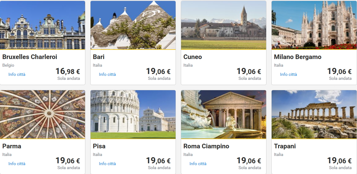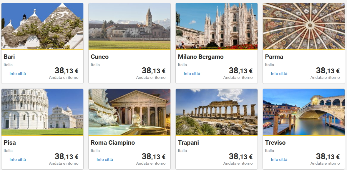 Dando un’occhiata alle offerte da Cagliari, si possono trovare voli per Milano, Bari,Pisa, Parma, Roma, Dusseldorf, Francoforte, Parigi, Bruxelles, Cracovia e altre destinazioni a pochi euro.
