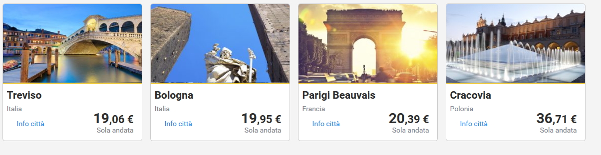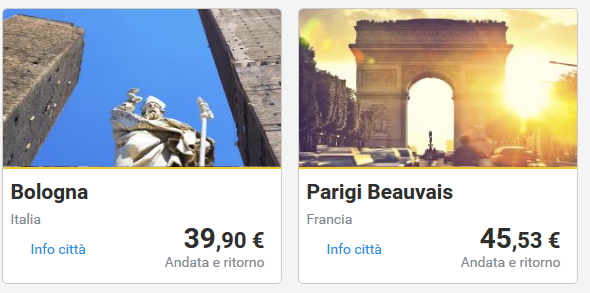Qui sotto invece trovate combinazioni di volo andata e ritorno per viaggi di 1-3 giorni