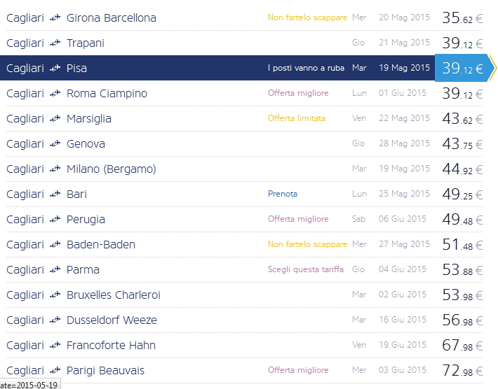 E’ un metodo che assomiglia tantissimo ai Super Giovedi di Easyjet: si tratta di voli nei quali rimangono solamente pochissimi posti e che vengono venduti a prezzi molto interessanti per noi viaggiatori low cost.