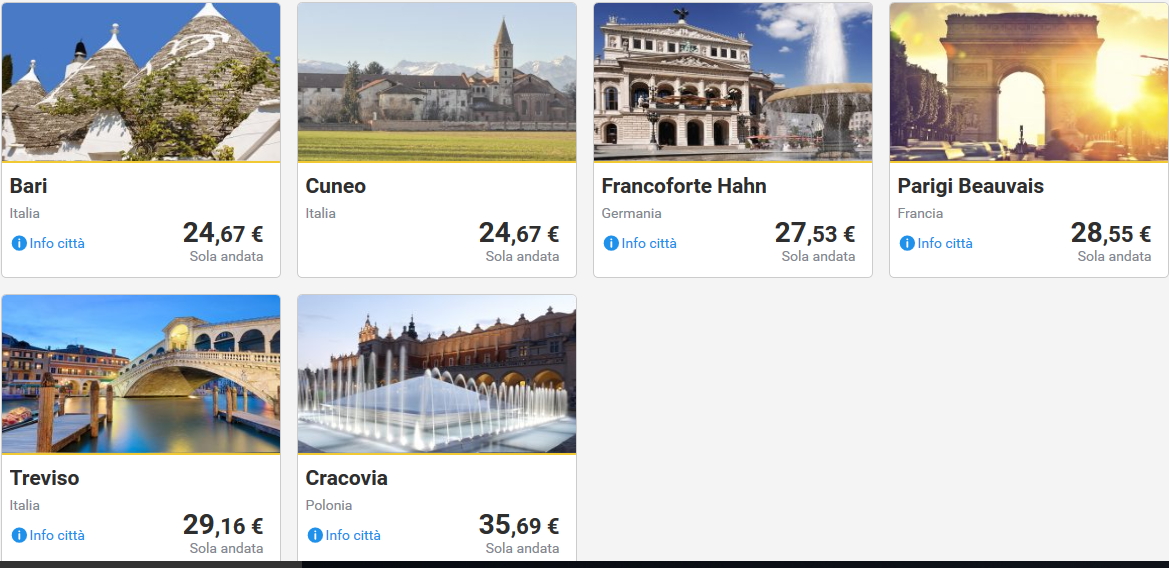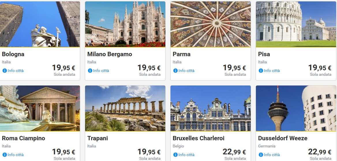 Dando un’occhiata alle offerte da Cagliari, si possono trovare voli per Milano, Pisa, Parma, Roma, Dusseldorf, Francoforte, Parigi, Bruxelles, Cracovia e altre destinazioni a pochi euro.