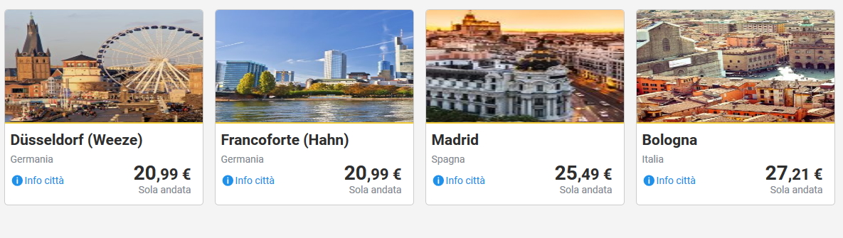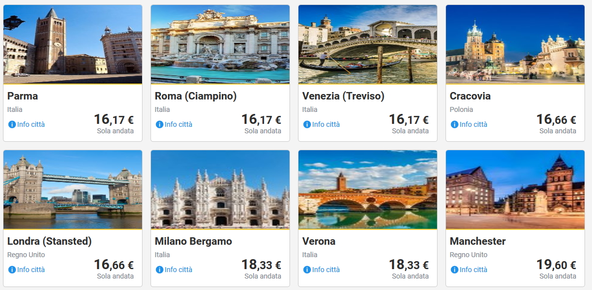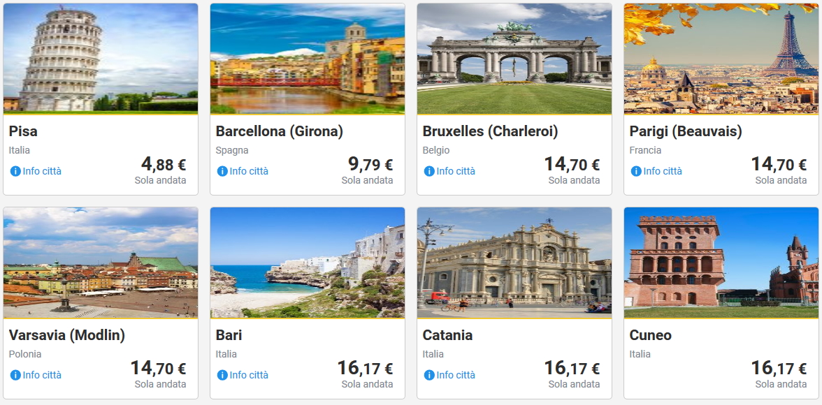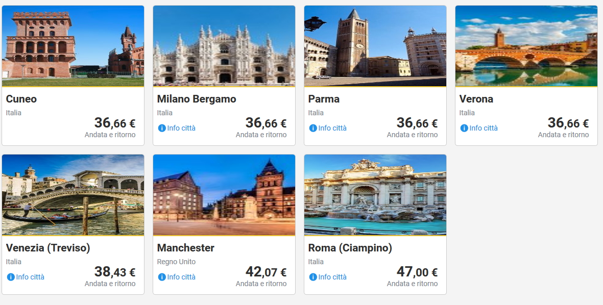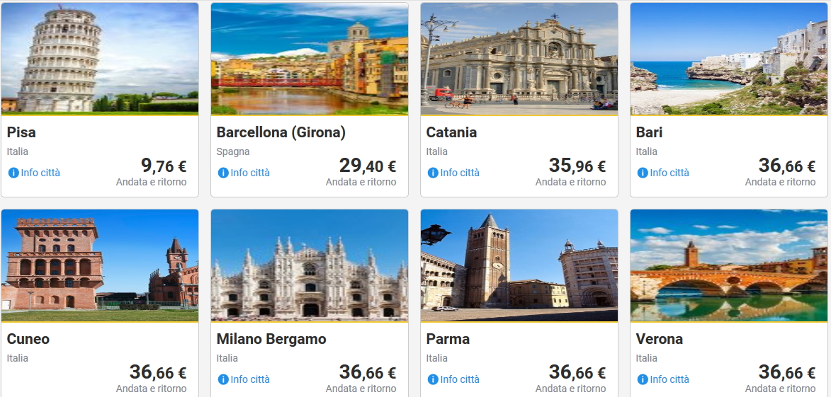Qui sotto invece trovate combinazioni di volo andata e ritorno per viaggi di 1-3 giorni