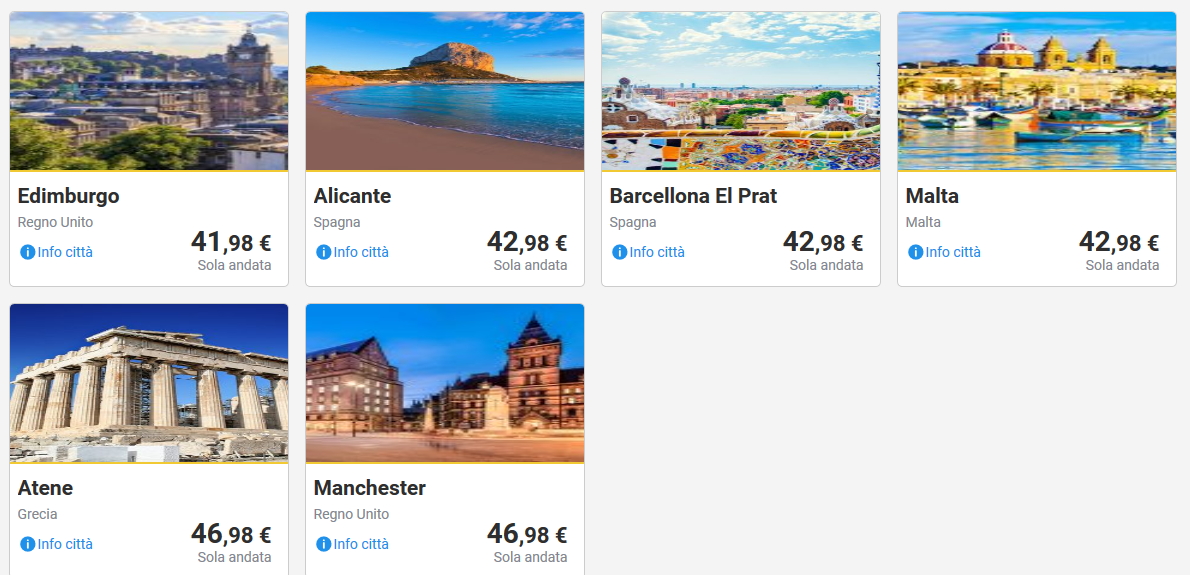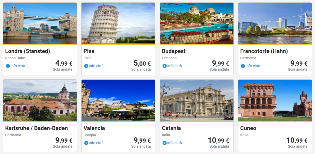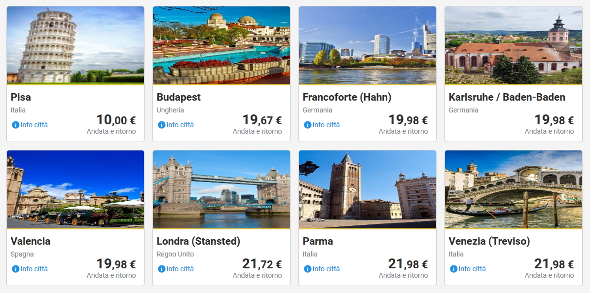 Ecco le svendite Ryanair di oggi, giovedi 12 DICEMBRE 2019: ci sono tantissimi voli da DICEMBRE 2019 A GIUGNO 2020 a partire da 4,99 €. Dando un’occhiata alle offerte da Cagliari, si possono trovare voli per Milano, Bari,Pisa, Verona,Parma, Roma, Francoforte, Parigi, Bruxelles, Cracovia e grande novità Budapest, Oporto, Siviglia, Valencia, Londra Luton e Manchester a pochi euro. Per trovare la schermata di queste offerte dovete cercare nel sito Ryanair la voce “Trova Tariffe” e selezionare Cagliari come aeroporto di partenza e ovunque per l’aeroporto di arrivo: il budget da scegliere sarà meno di 50 euro.