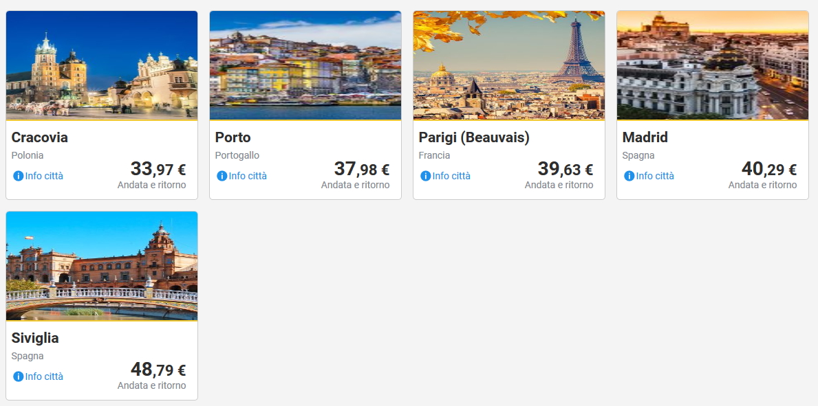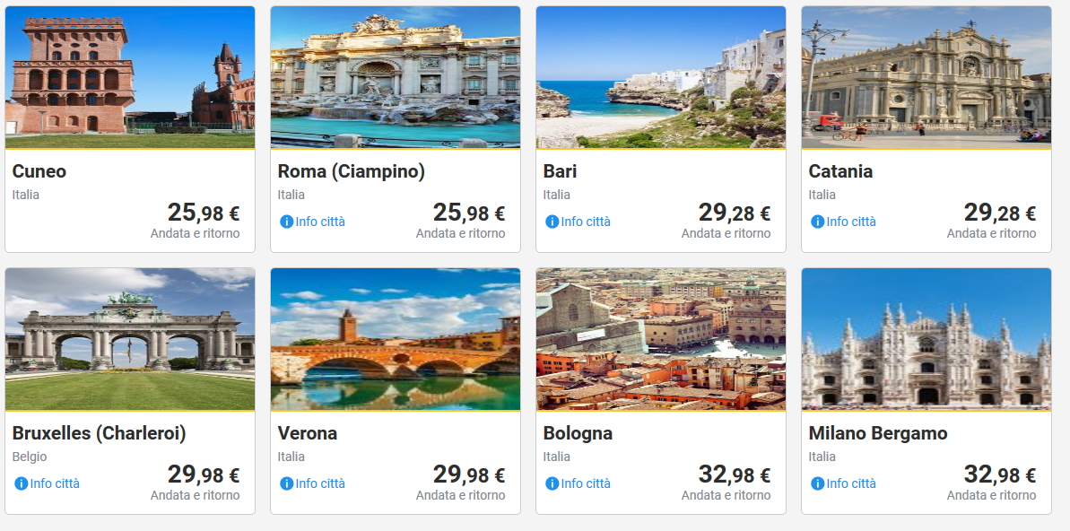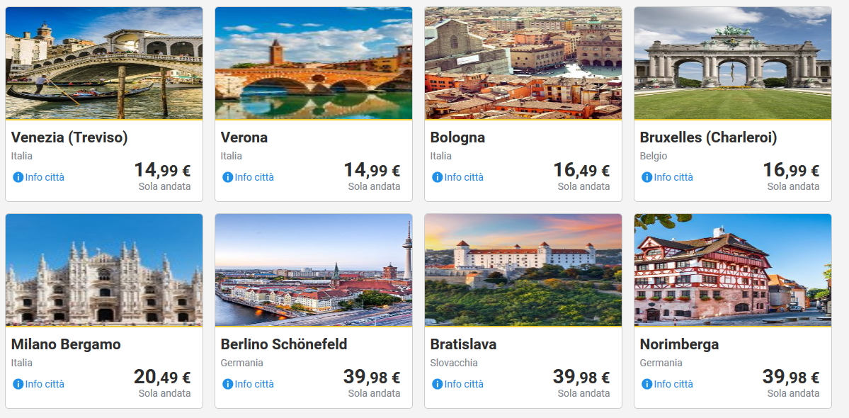 Qui sotto invece trovate combinazioni di volo andata e ritorno per viaggi di 1-3 giorni