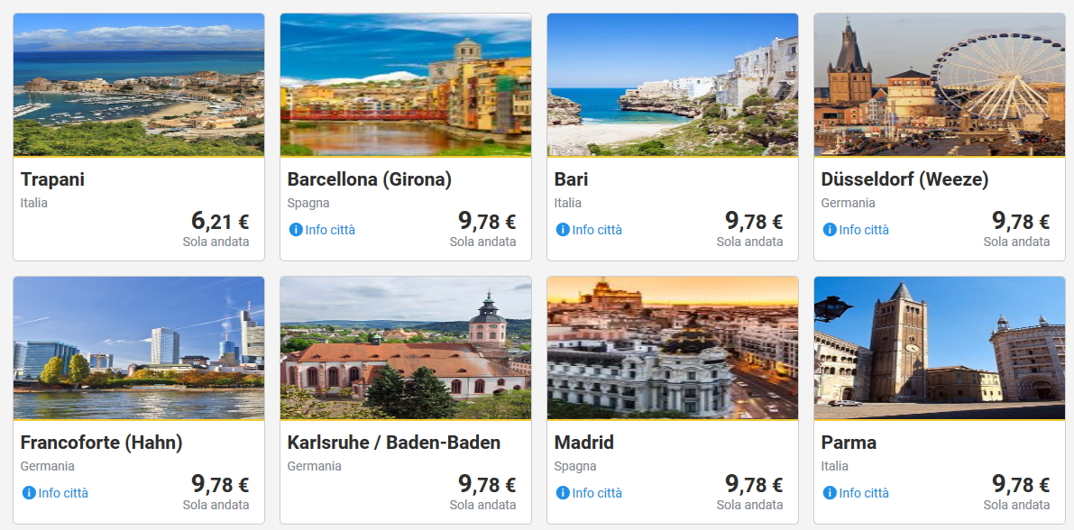 NEWRYANAIREcco le svendite Ryanair di oggi, giovedi 15 NOVEMBRE 2018: ci sono tantissimi voli da DICEMBRE AD APRILE 2019 a partire da 6,21 €. Dando un’occhiata alle offerte da Cagliari, si possono trovare voli per Milano, Bari,Pisa, Verona,Parma, Roma, Francoforte, Parigi, Bruxelles, Cracovia e grande novità Budapest, Oporto, Siviglia, Valencia, Londra Luton e Manchester a pochi euro. Per trovare la schermata di queste offerte dovete cercare nel sito Ryanair la voce “Trova Tariffe” e selezionare Cagliari come aeroporto di partenza e ovunque per l’aeroporto di arrivo: il budget da scegliere sarà meno di 50 euro.