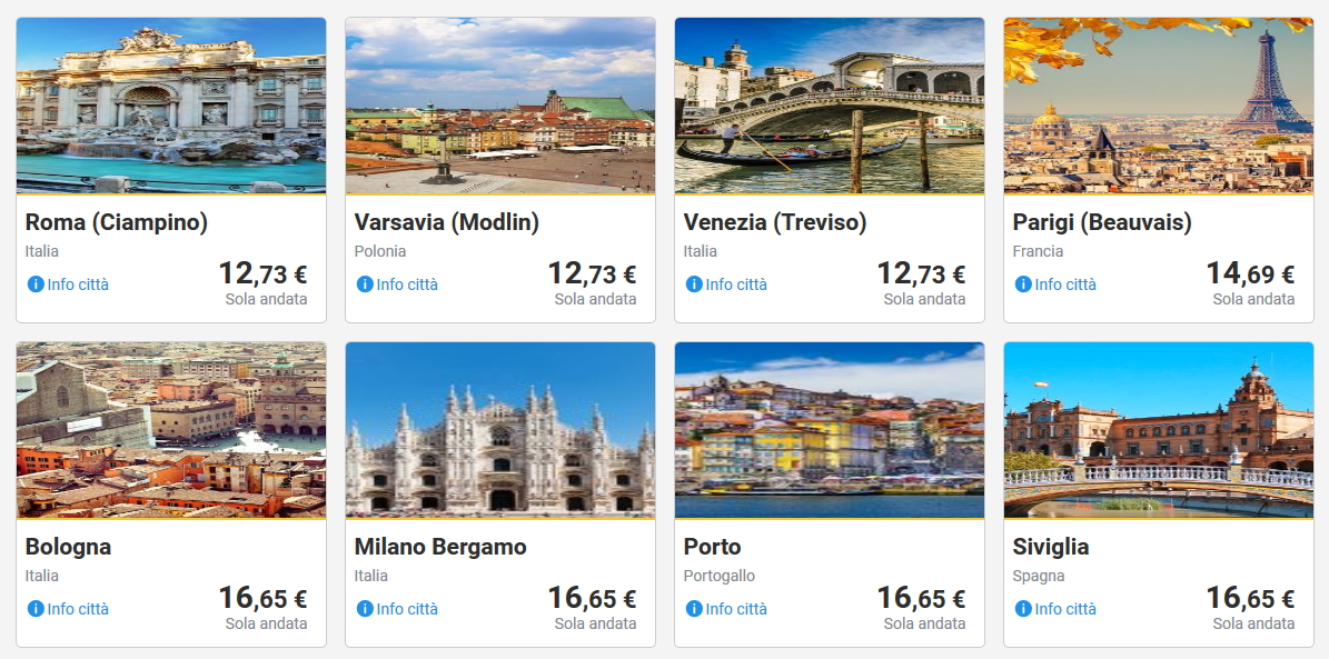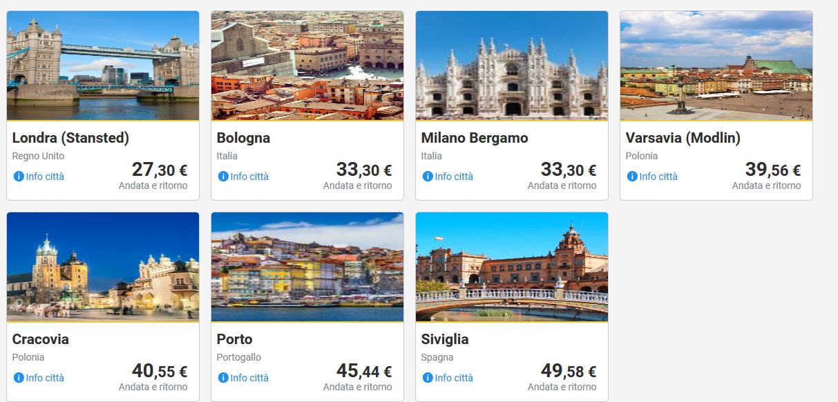 Qui sotto invece trovate combinazioni di volo andata e ritorno per viaggi di 1-3 giorni