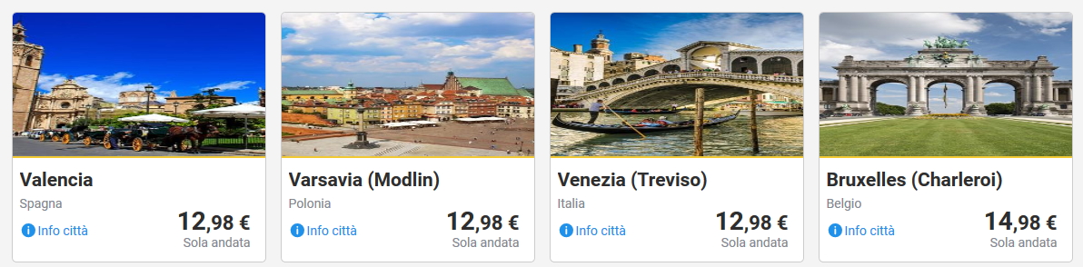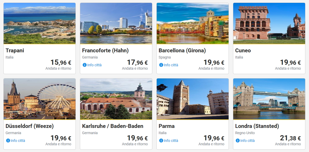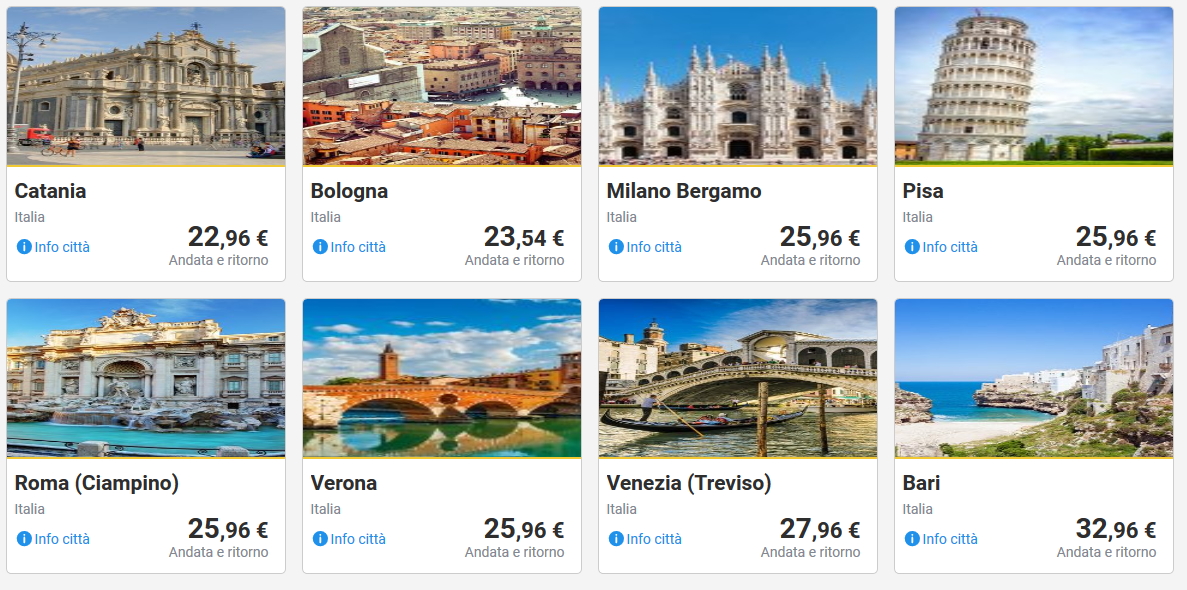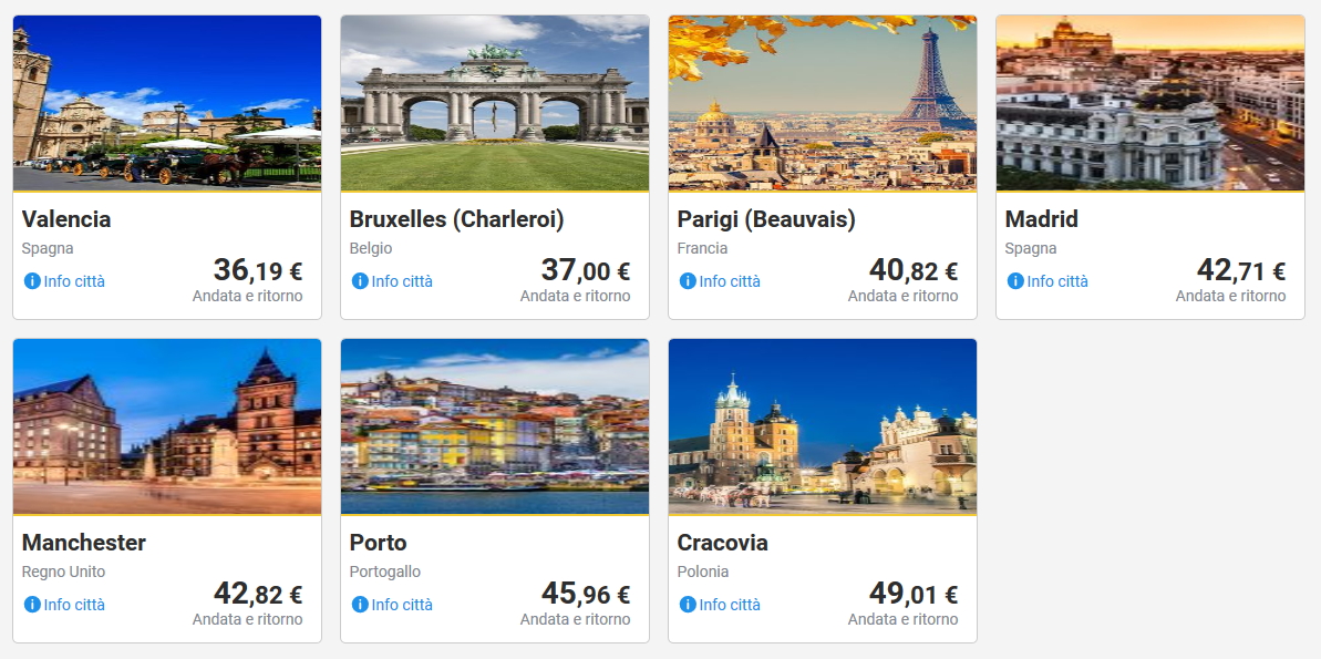 Qui sotto invece trovate combinazioni di volo andata e ritorno per viaggi di 1-3 giorni