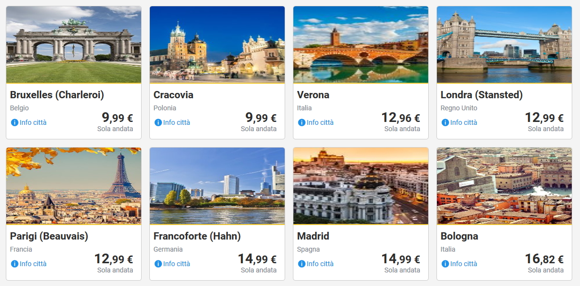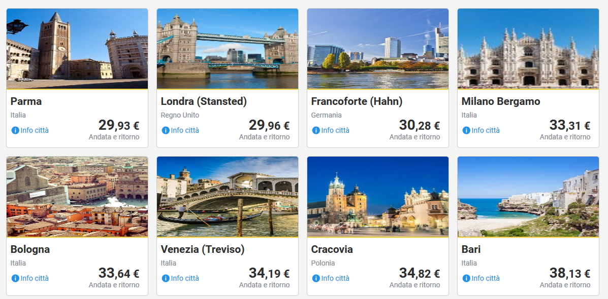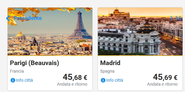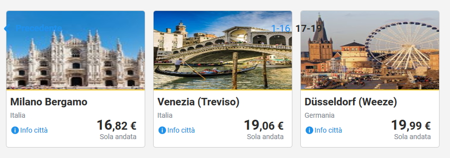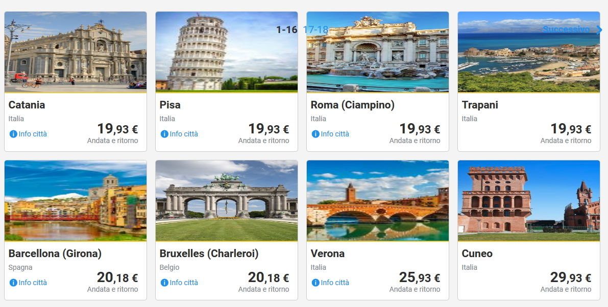 Qui sotto invece trovate combinazioni di volo andata e ritorno per viaggi di 1-3 giorni