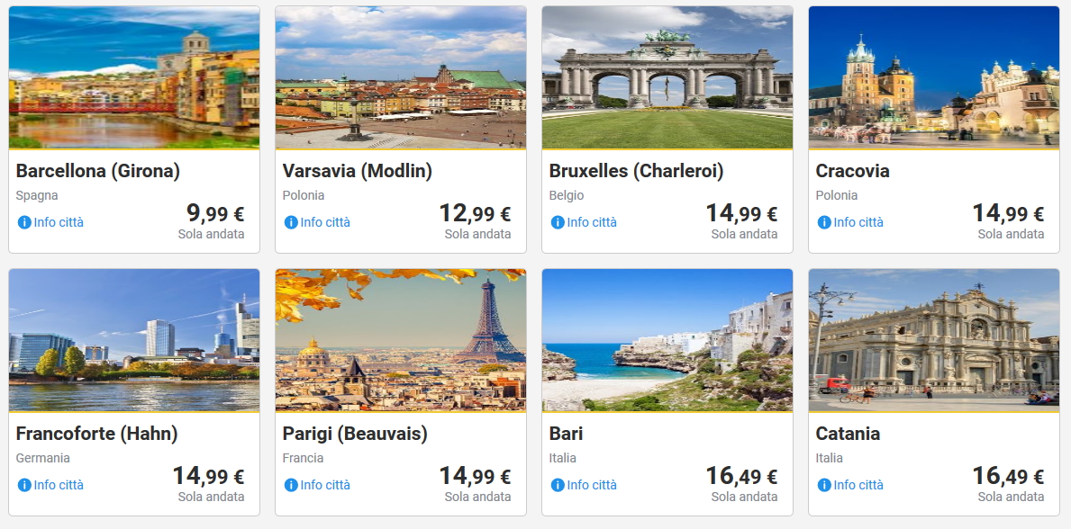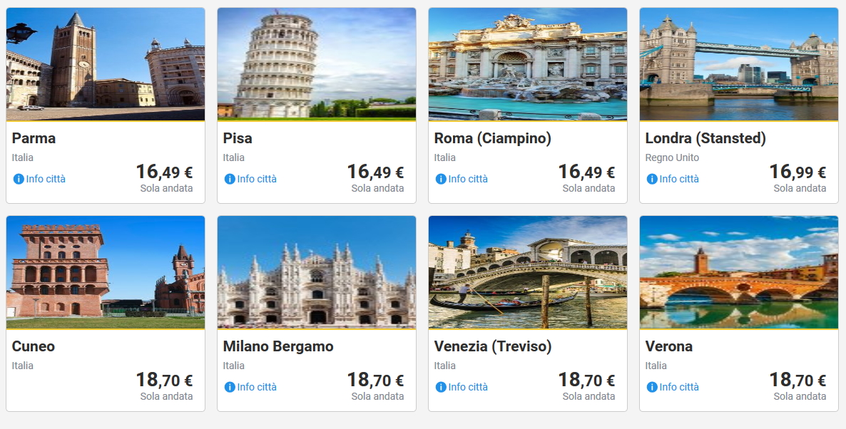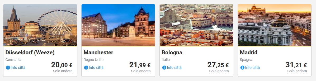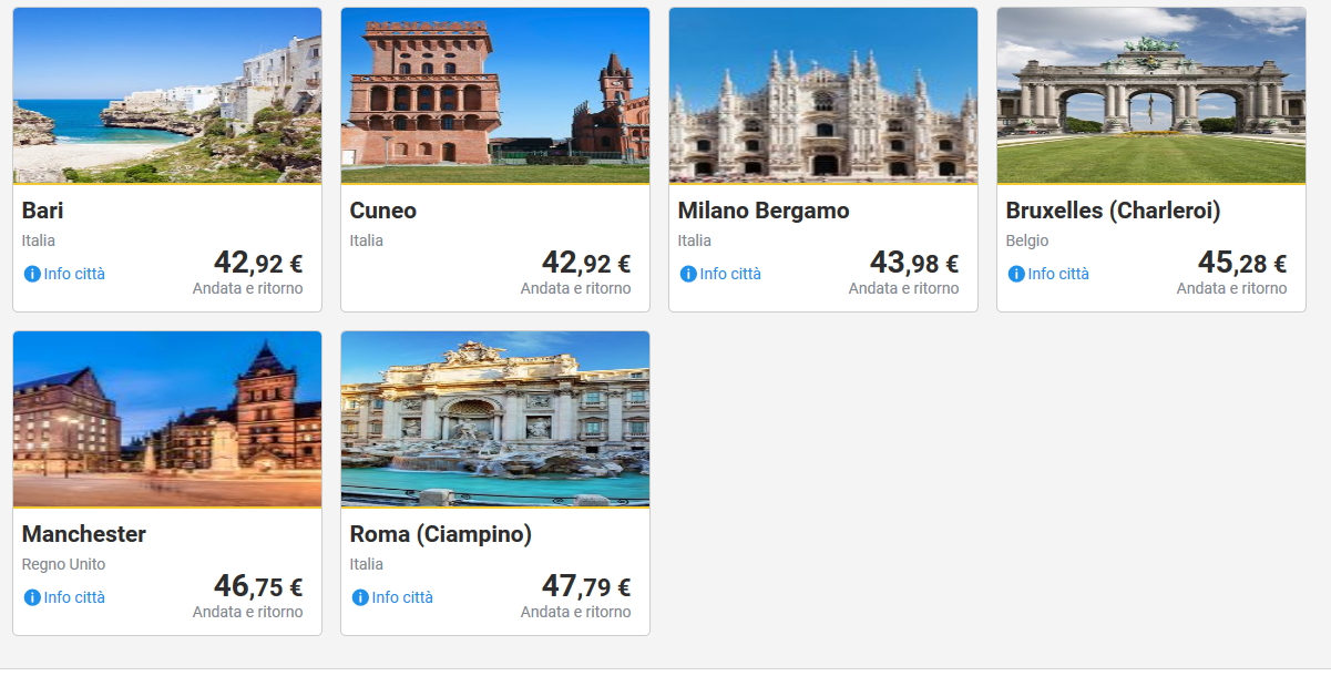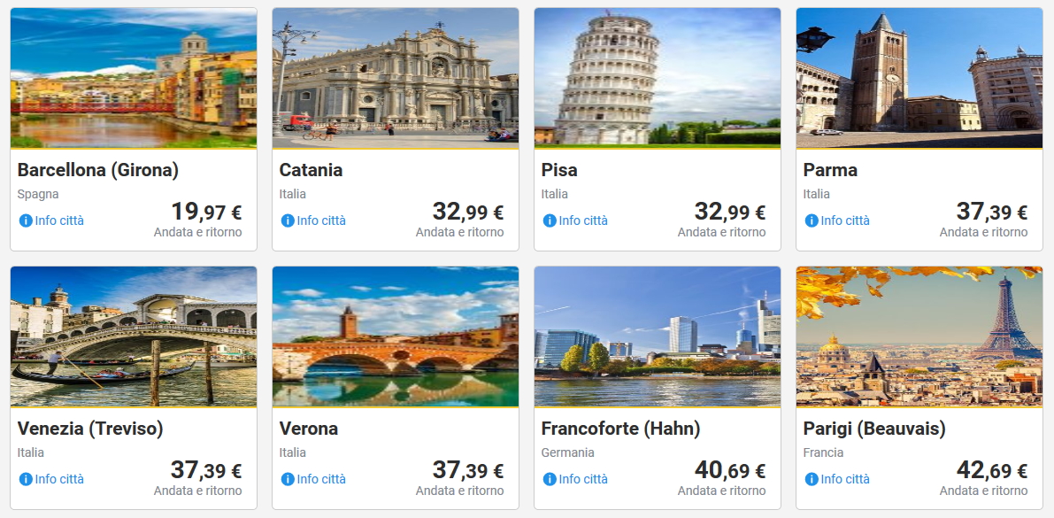 Qui sotto invece trovate combinazioni di volo andata e ritorno per viaggi di 1-3 giorni