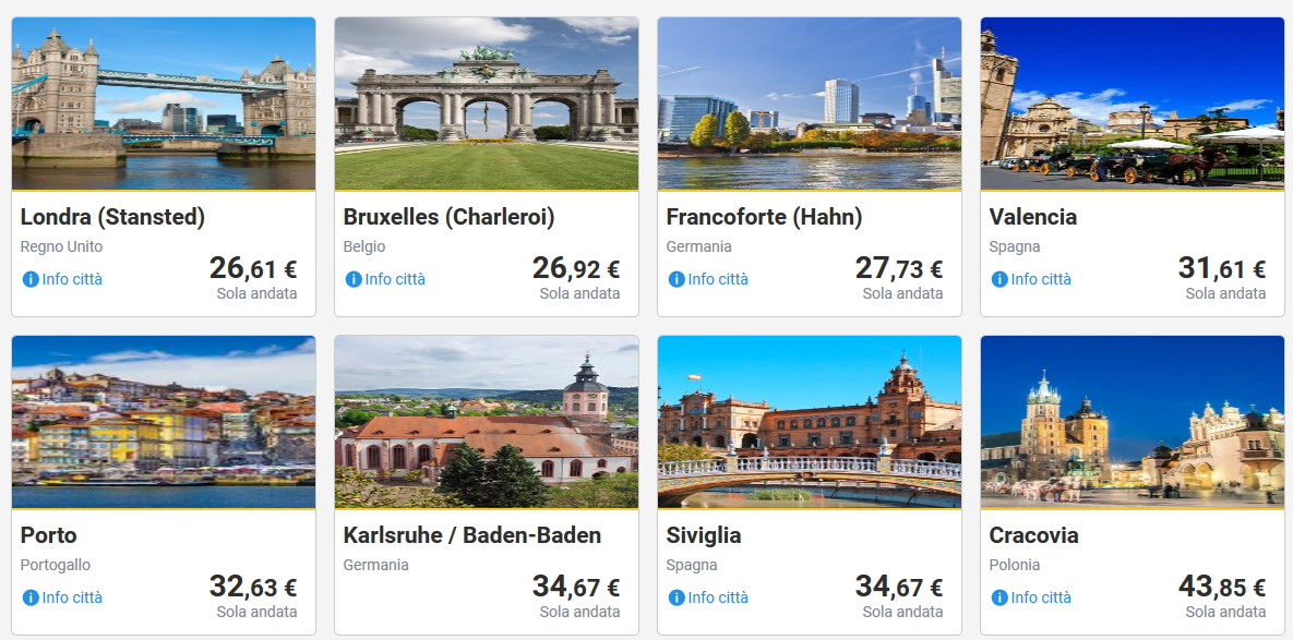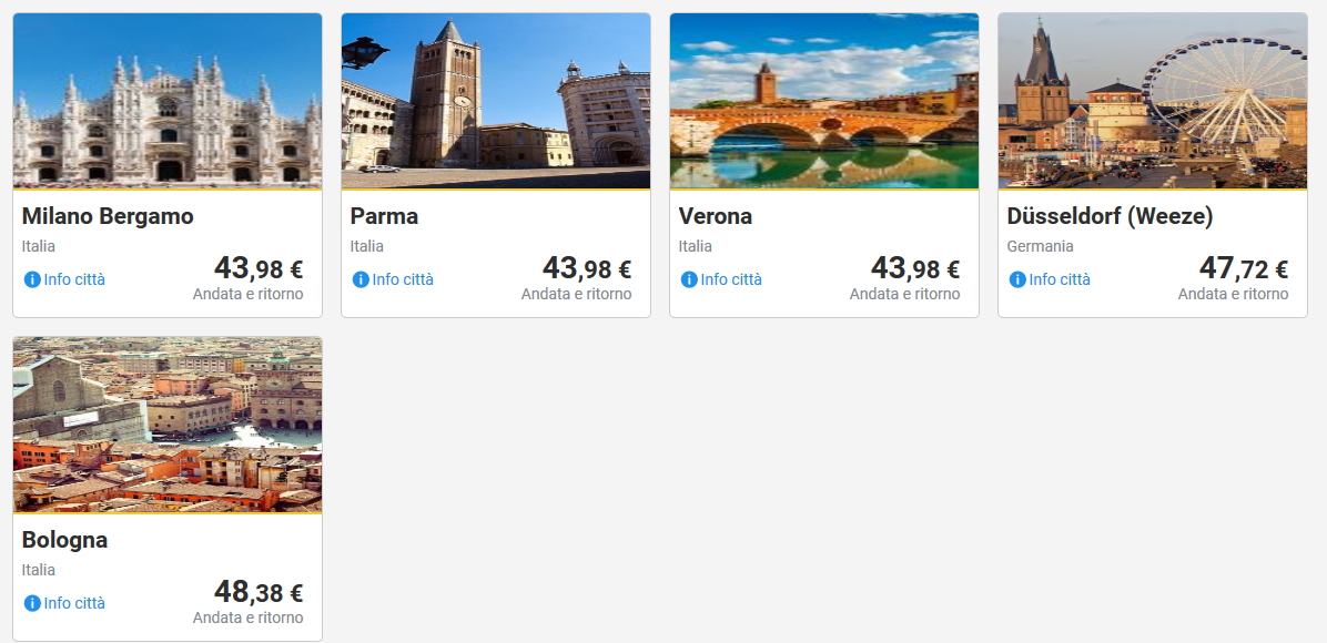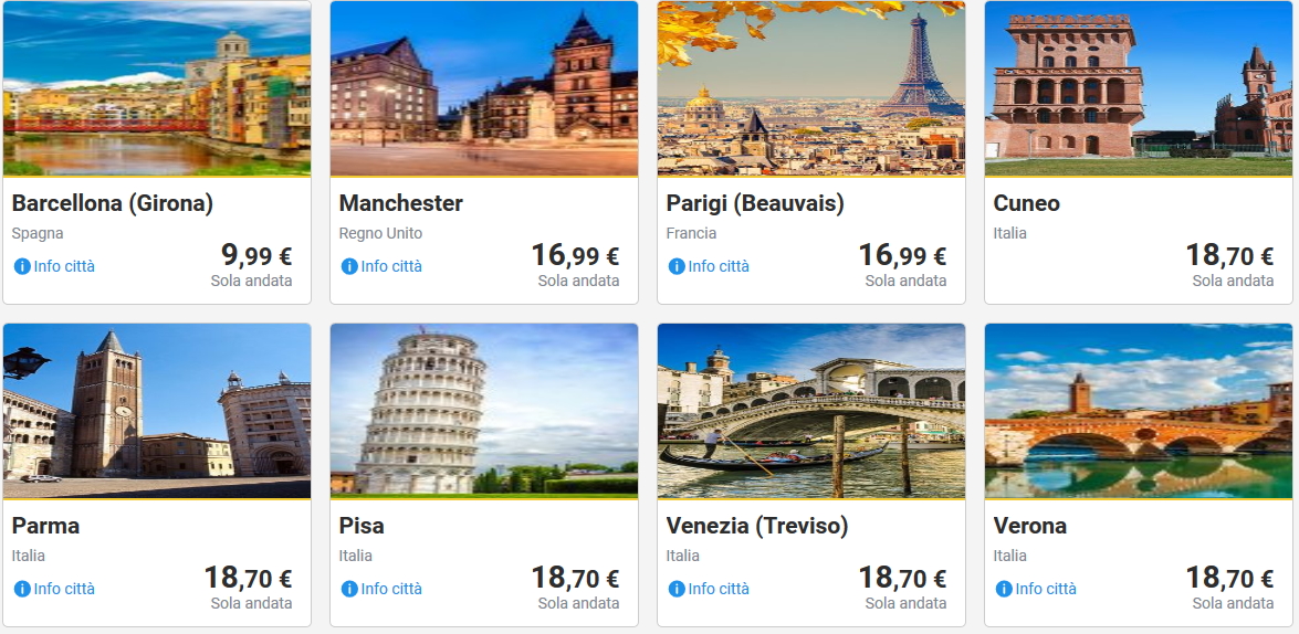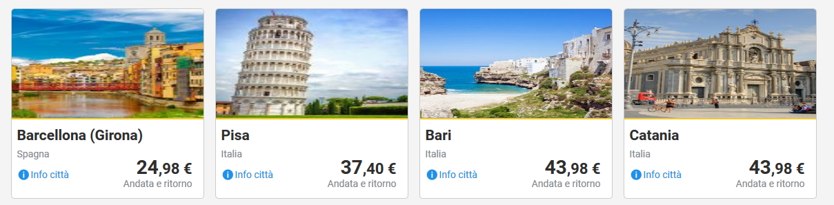 Qui sotto invece trovate combinazioni di volo andata e ritorno per viaggi di 1-3 giorni