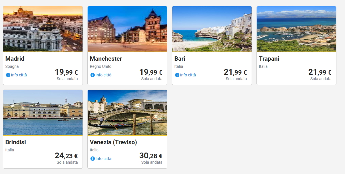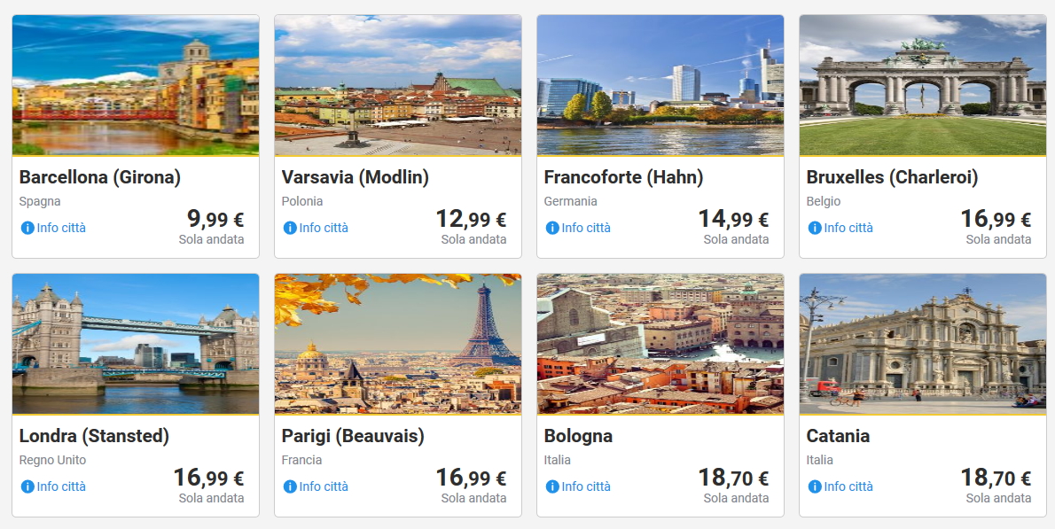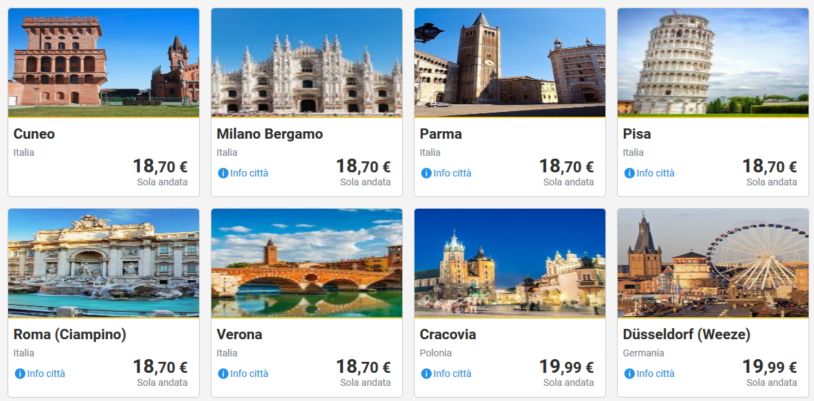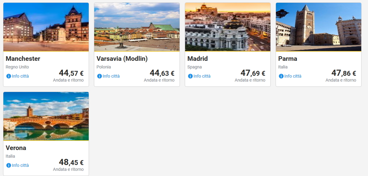 Qui sotto invece trovate combinazioni di volo andata e ritorno per viaggi di 1-3 giorni