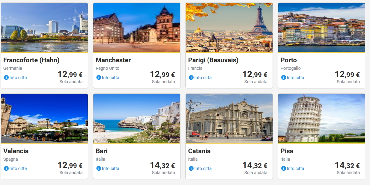 NEWRYANAIREcco le svendite Ryanair di oggi, giovedi 21 MARZO 2019: ci sono tantissimi voli da APRILE A LUGLIO 2019 a partire da 2,98 €. Dando un’occhiata alle offerte da Cagliari, si possono trovare voli per Milano, Bari,Pisa, Verona,Parma, Roma, Francoforte, Parigi, Bruxelles, Cracovia e grande novità Budapest, Oporto, Siviglia, Valencia, Londra Luton e Manchester a pochi euro. Per trovare la schermata di queste offerte dovete cercare nel sito Ryanair la voce “Trova Tariffe” e selezionare Cagliari come aeroporto di partenza e ovunque per l’aeroporto di arrivo: il budget da scegliere sarà meno di 50 euro.