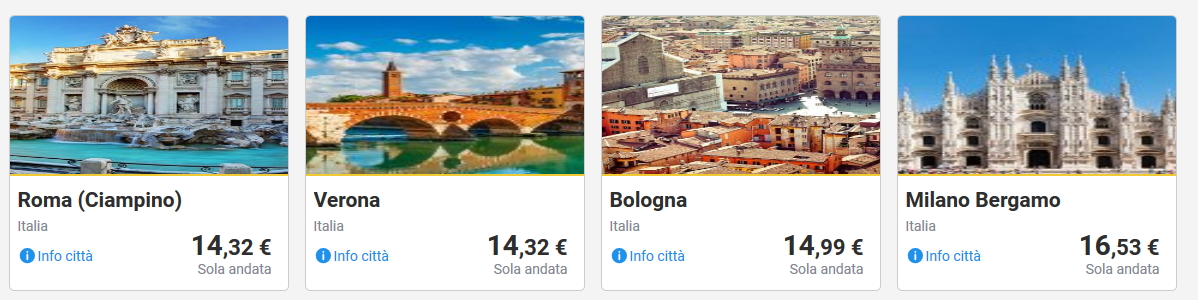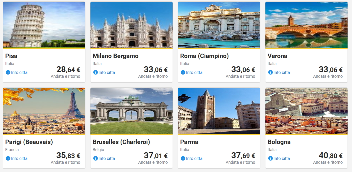 Qui sotto invece trovate combinazioni di volo andata e ritorno per viaggi di 1-3 giorni