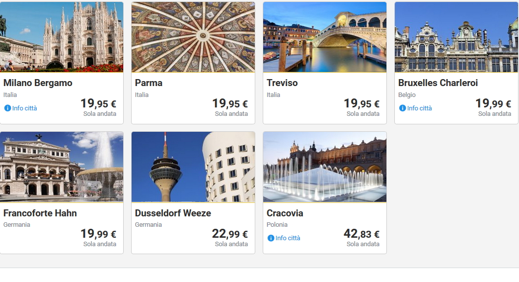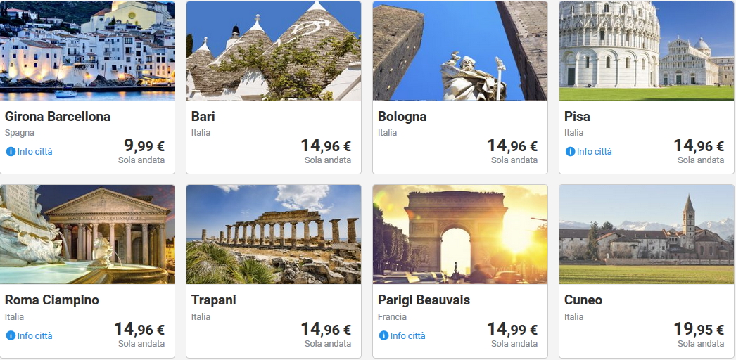 Dando un’occhiata alle offerte da Cagliari, si possono trovare voli per Milano, Barcellona Girona, Bruxelles, Cracovia e altre destinazioni a pochi euro.