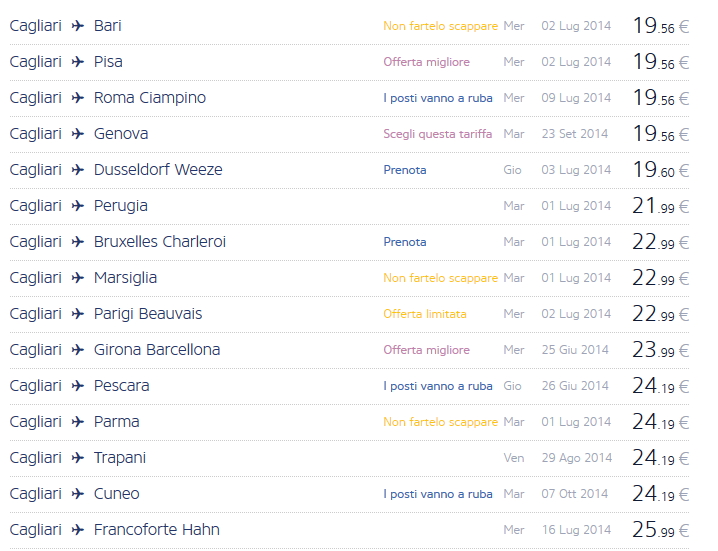 I VOLI IN SVENDITA RYANAIR DA CAGLIARI – GIOVEDI 5 GIUGNO 2014THE SALE FLY RYANAIR FROM CAGLIARI- THURSDAY JUNE 5,2014