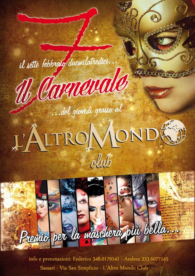 IL CARNEVALE DELL’ALTRO MONDO – L’ALTRO MONDO CLUB – SASSARI – GIOVEDI 7 FEBBRAIOTHE CARNIVAL OF THE OTHER WORLD – L’ALTRO MONDO CLUB – SASSARI – THURSDAY FEBRUARY 7