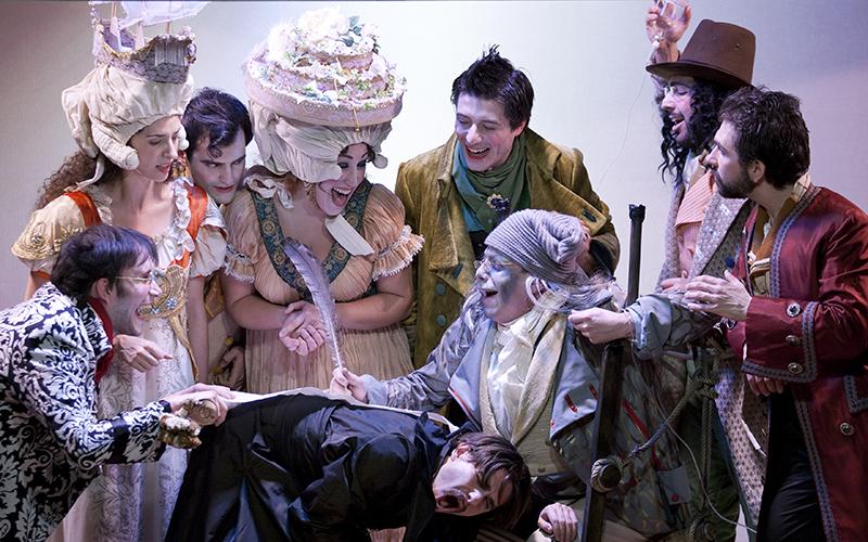 Ma i giovani, ai quali stiamo consegnando un paese per il quale ogni giorno sentiamo vergogna, si sono appassionati nel raccontare questa commedia amara e divertente di vita all’Italiana: e con loro mi sono sentito meno frustrato nelle scelte del mio mestiere di regista che da troppo tempo si misurava con le poche opportunità offerte dalla prudenza dei nostri cartelloni. Sentire lo sdegno sarcastico di Alfieri, riproporlo al pubblico con la forza di un lessico esemplare per sobrietà e ricchezza espressiva, libera lo spirito costretto nelle poche centinaia di espressioni alle quali è definitivamente condannata la lingua italiana contemporanea; e travestire i suoi personaggi con i caratteri eterni della mediocrità patria, con i ceffi imperituri dell’impudenza sociale, della politica gaglioffa, dell’ambiguità morale ci fa capire che qualcosa di eterno e imperituro è all’origine della nostra secolare decadenza. È talvolta più utile divertirsi con i travestimenti del teatro, con le maschere e le luci dei suoi giochi illusori, che dedicarsi alla lettura delle gazzette che Hegel raccomandava quotidianamente ai suoi contemporanei.
